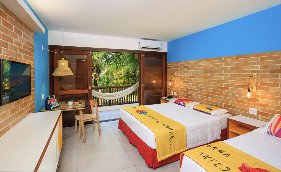 • A categoria quintal vista piscina une o melhor dos dois mundos: a varanda privativa no térreo e a bela vista para o parque aquático.