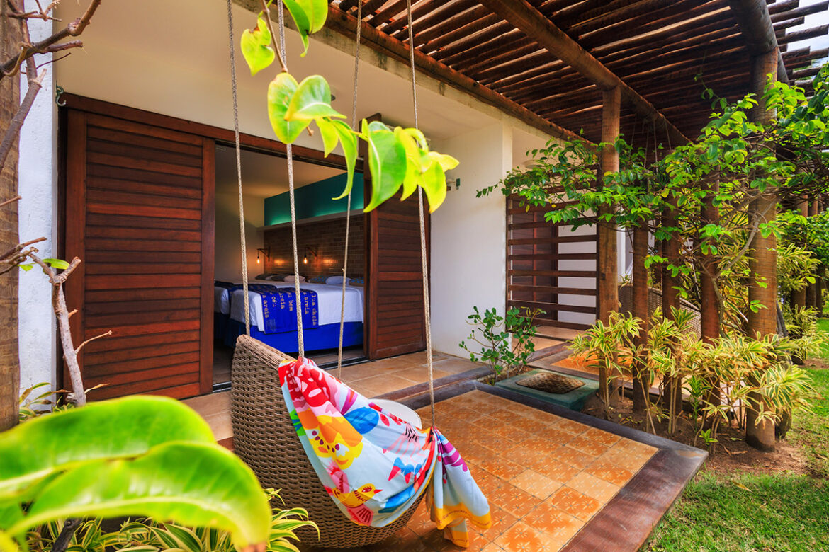• Já os apartamentos quintal, no térreo, contam com uma charmosa varanda exclusiva que permite aproveitar ainda mais os espaços ao ar livre e um chuveirão privativo, perfeito para ser refrescar após a praia
