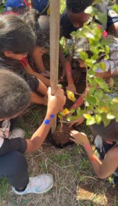 Sob orientação do engenheiro ambiental João Pedro da Mota, e com o apoio de Diego, as crianças plantaram uma árvore frutífera e um ipê rosa — um gesto simbólico que representa cuidado, crescimento e futuro.