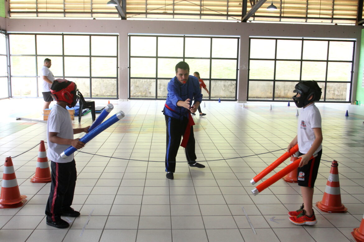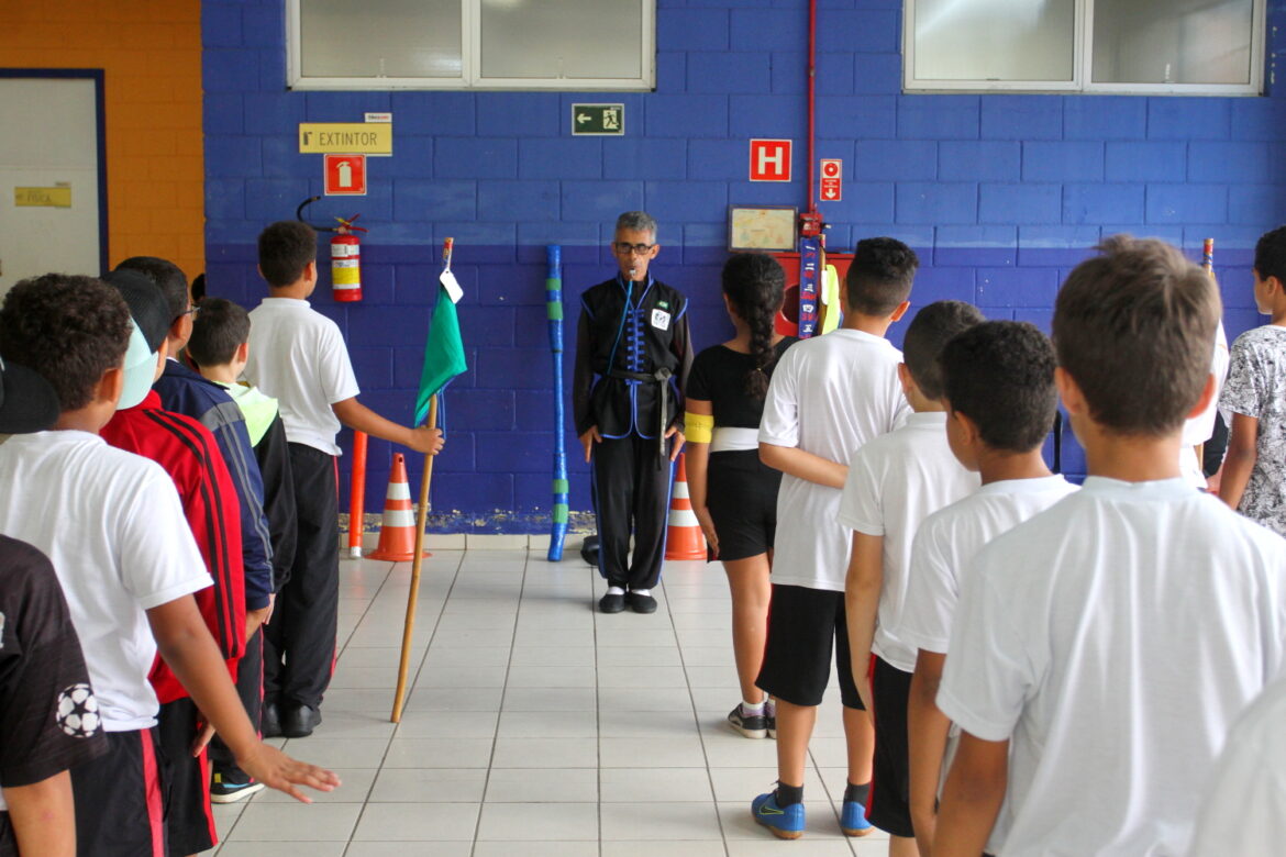 Legenda: Alunos da EMEF Conceição Magalhães (Jardim Paraíso) em aula de Kung Fu, em Jacareí