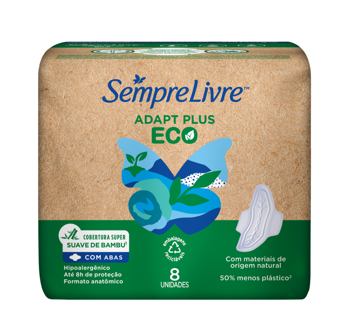 A Johnson & Johnson Consumer Health, divisão de consumo da maior empresa de saúde do mundo, acredita que pessoas saudáveis ​​dependem de um planeta saudável. Para avançar em sua agenda de sustentabilidade, a empresa está lançando SEMPRE LIVRE®️ ADAPT PLUS ECO, que conta com 50% menos plástico (comparado à versão atual SEMPRE LIVRE® ADAPT PLUS), sendo a embalagem externa feita de papel e os absorventes cobertos por uma camada de bambu e 80% de materiais de fonte renovável.