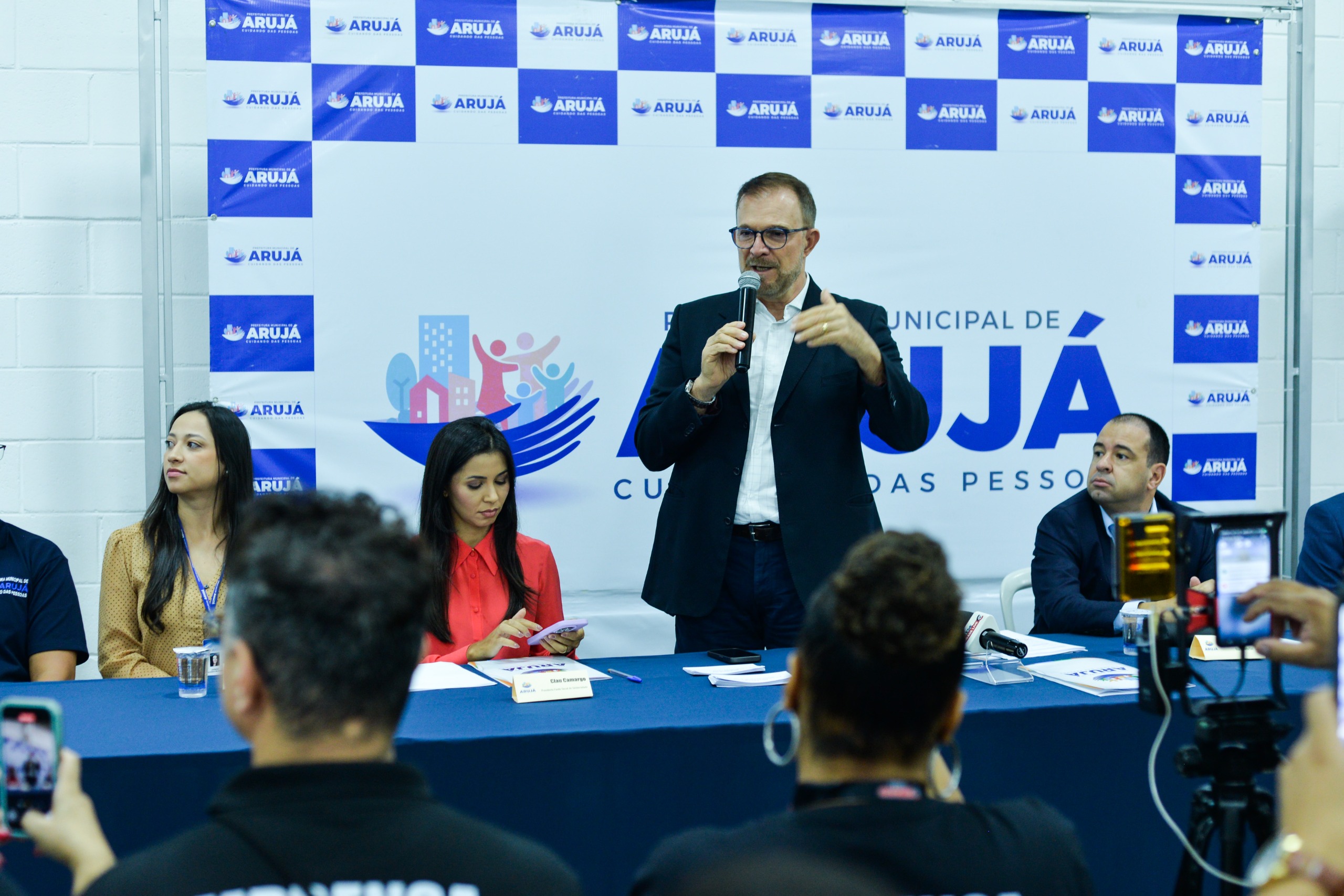Em coletiva de imprensa realizada nesta quinta-feira (10) no auditório do Parque dos Ipês, foram comentadas diversas ações que estão sendo desenvolvidas pela Prefeitura de Arujá. Dentre elas, é possível destacar o Pró-Mulher, o CAPS Barreto e a Unidade Básica de Saúde (UBS) do Jardim Emília, na área da Saúde; a Atividade Delegada, na Segurança Pública; o Parque do Jardim Real, no Turismo e Lazer; as tratativas com o Governo Federal para o Minha Casa, Minha Vida e diversos outros itens que merecem atenção.