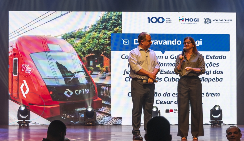A prefeita Mara Bertaiolli e o vice-prefeito Téo Cusatis concluíram a apresentação dos 100 dias de governo, nesta terça-feira (15/4), no Theatro Vasques, com três anúncios de obras de grande porte que trarão melhorias para os mogianos nas áreas de mobilidade e saúde. Mogi das Cruzes terá as quatro estações ferroviárias da Companhia Paulista de Trens Metropolitanos (CPTM) reformadas – Jundiapeba, Braz Cubas, Centro e Estudantes – , além da construção da estação de Cezar de Souza, da duplicação da avenida Pedro Romero e da instalação do Cidade da Saúde, no prédio do antigo Liceu Braz Cubas, na área central.