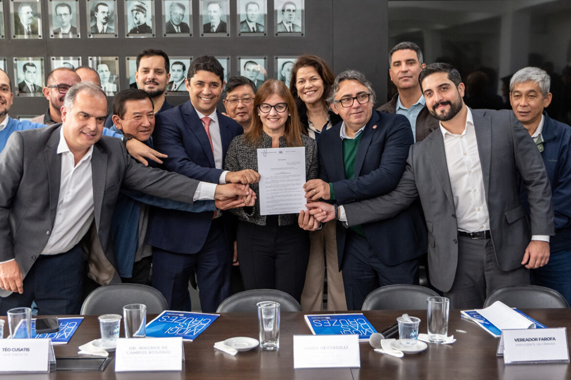Prefeita Mara Bertaiolli sancionou hoje (dia 01/07) projeto de lei, na presença do controlador geral do Estado, Wagner Rosário; Cidade também terá Código de Ética para os servidores públicos