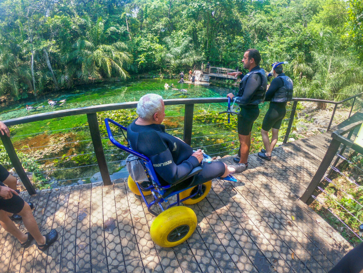 Um dos propósitos da Nascente Azul, o atrativo mais visitado de Bonito, é promover a igualdade através da acessibilidade, pois entende que todos devem ter o direito de vivenciar as experiências únicas proporcionadas pela natureza. Como um dos únicos empreendimentos em Bonito que investem em inclusão, a Nascente Azul recebeu, no último dia 05, um grupo da SETESCC (Secretaria de Estado de Turismo, Esporte, Cultura e Cidadania do Mato Grosso do Sul) para uma visita técnica do programa Turismo Acessível.