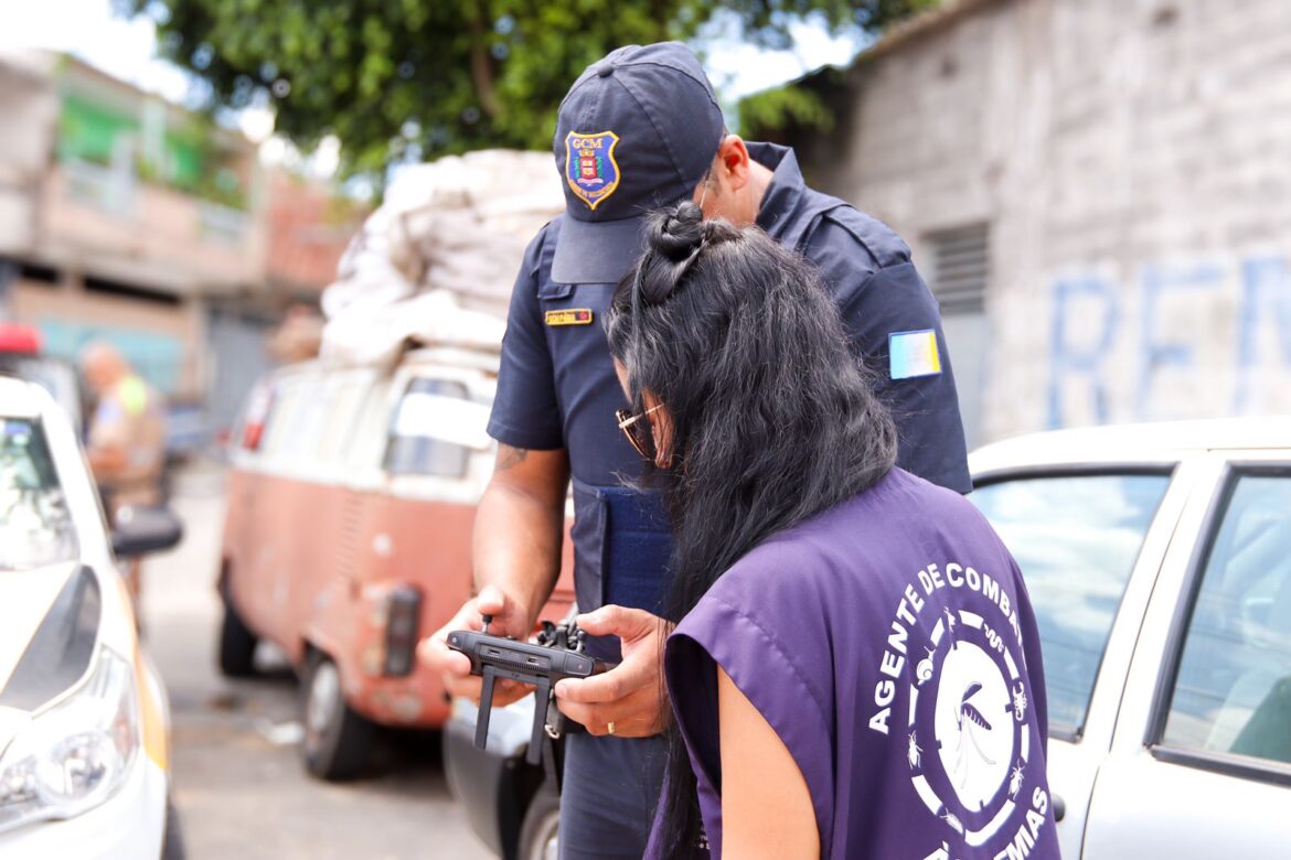 A Guarda Civil Municipal (GCM) e a equipe da Zoonoses realizaram no último sábado ( 24), uma operação integrada contra o mosquito da dengue. A ação contou com o reforço do drone operado pela corporação para sobrevoar as casas da Vila Jamil, Vila Santo Antônio e no Jardim Rosana.
