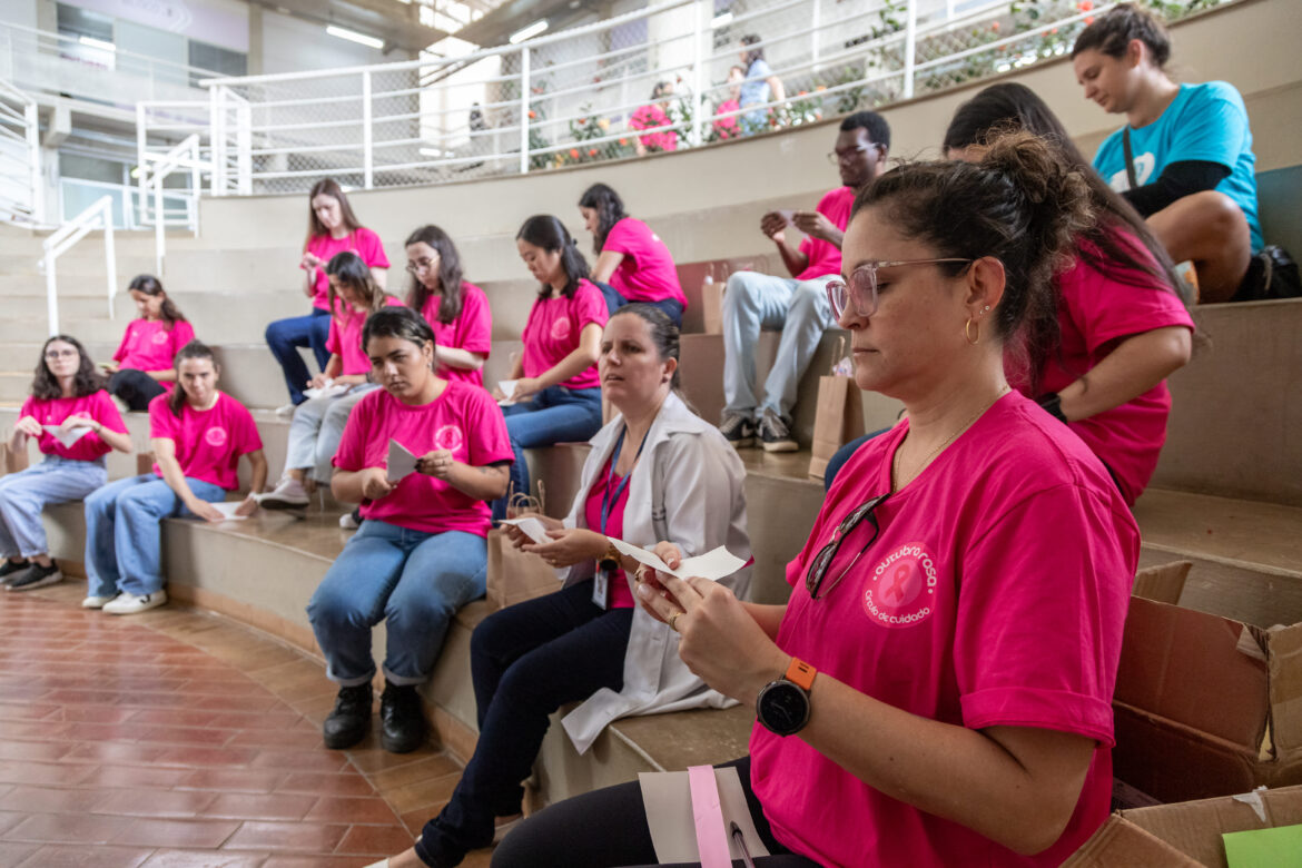 Além disso, o Cesap também foi palco para uma demonstração de confecção de kits para doação a pacientes, quando voluntários criaram origamis, escreveram bilhetes personalizados e montaram kits para doação, contendo um lenço para as mulheres que estão em tratamento.