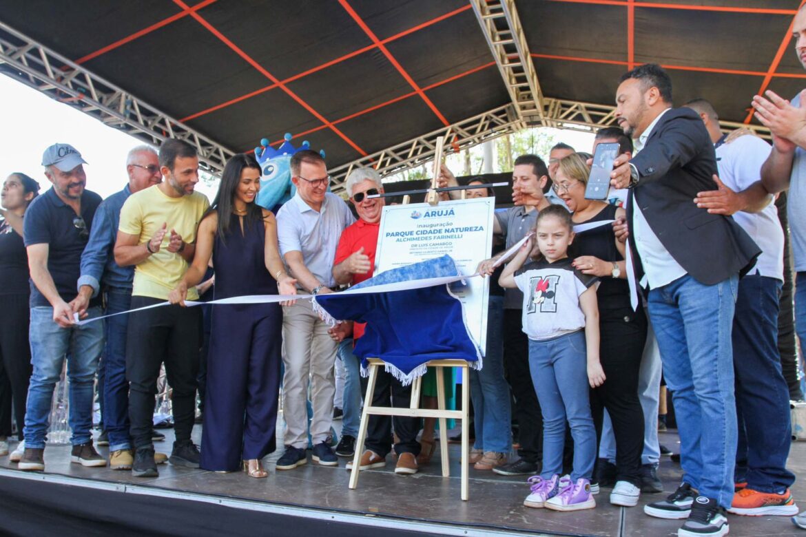 O Parque Cidade Natureza “Alchimedes Farinelli” foi entregue pela Prefeitura de Arujá, neste sábado (11), em meio às comemorações do Dia das Mães. Localizado na avenida Nossa Senhora da Penha, 399, no bairro do Jordanópolis, o ambiente de recreação foi entregue pelo prefeito Luis Camargo, o Dr Camargo, acompanhado da primeira-dama e presidente do Fundo Social de Solidariedade, Clau Camargo, do vice-prefeito Betinho, além dos vereadores, secretariado municipal, entre eles, os titulares das pastas diretamente envolvidas com a obra, como o de Planejamento Urbano, Meio Ambiente, Serviços Públicos, de Turismo e Lazer e de Esportes.