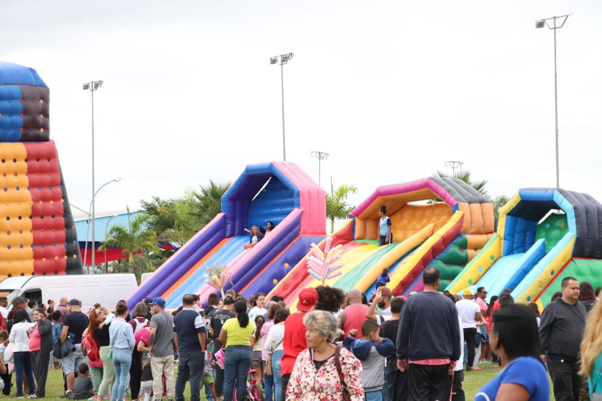 Para as crianças também foi preparado um conjunto de atrações circenses. No sábado, no início da tarde, a Cia. Mina do Riso e a Combuca da Judite entraram em cena, e no domingo foi a vez da Art Nossa Eventos mostrar sua graça. Ao fim dessas atrações, os pequenos correram para os brinquedos infláveis que estavam dispostos logo na sequência da pista da caminhada, após o pavilhão. Todos que tiravam fotos no ponto instagramável da Expo 2023 registraram, ao fundo, meninos e meninas descendo dos escorregadores, que acabaram compondo o cenário.