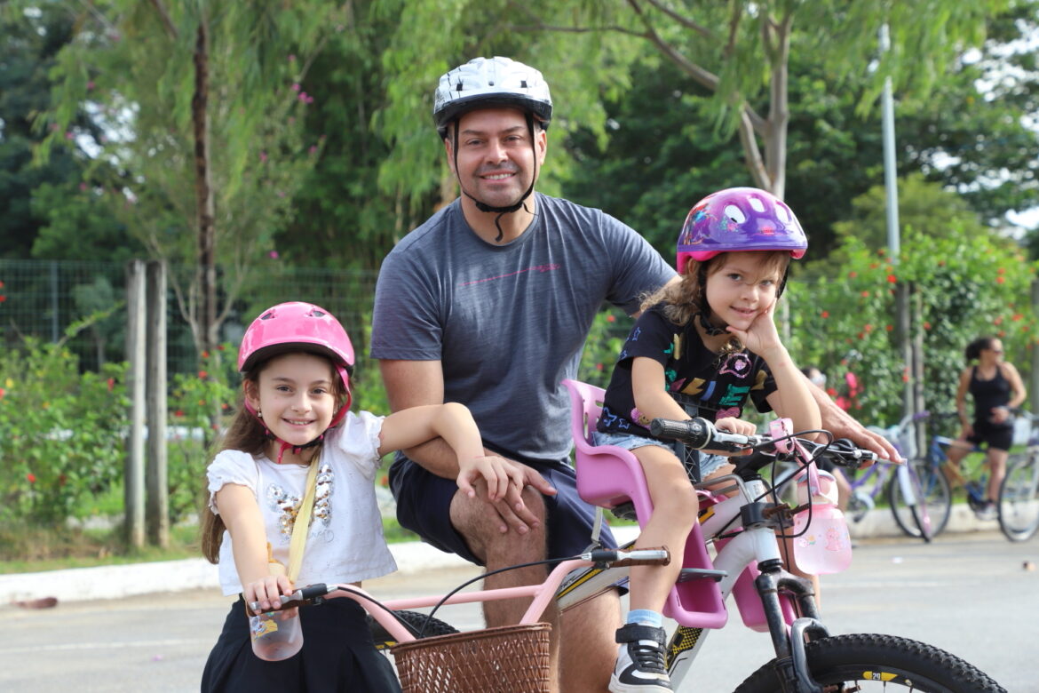 O engenheiro Luiz Camargo levou as filhas Júlia e Luiza, que estavam ansiosas antes do pedal começar: “É a primeira vez delas, que adoraram a ideia do passeio começar em um parque e terminar no outro. É diversão antes, durante e depois”, disse. As meninas estavam de capacete e garantiram a hidratação, já que o papai atento lembrou de levar garrafinhas de água.