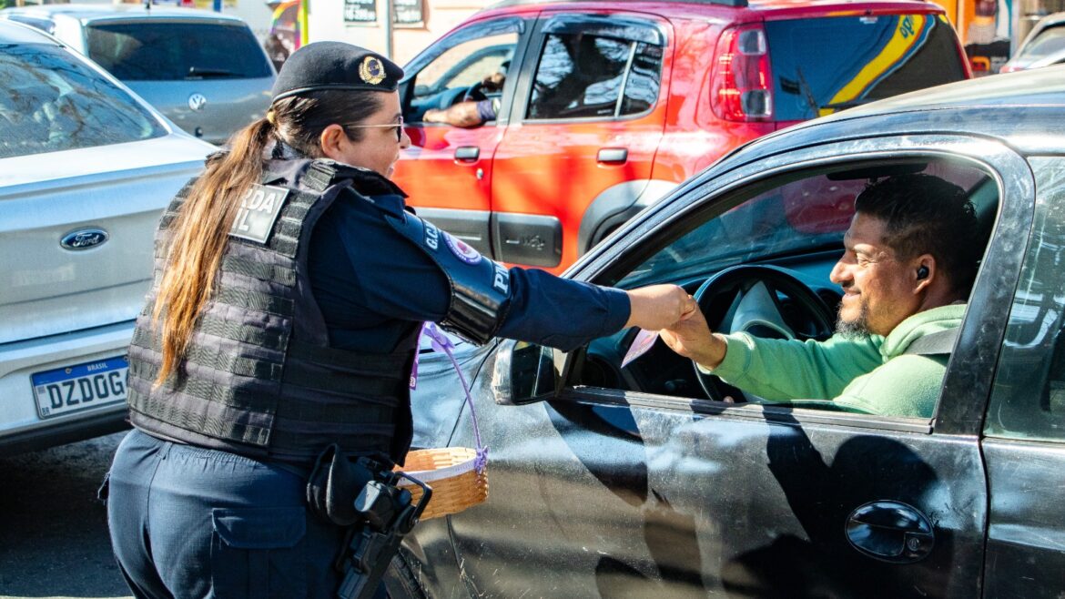 A Patrulha Maria da Penha, da Guarda Civil Municipal (GCM) de Arujá, realizou uma ação de conscientização contra a violência às mulheres. A equipe da Patrulha, juntamente com a GCM, distribuiu panfletos informativos contendo telefones para denúncias.