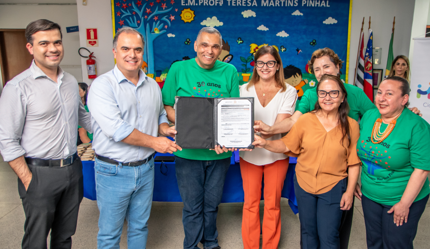 Prefeita Mara Bertaiolli assina ordem de serviço para a reforma da EM Profª Teresa Martins Pinhal