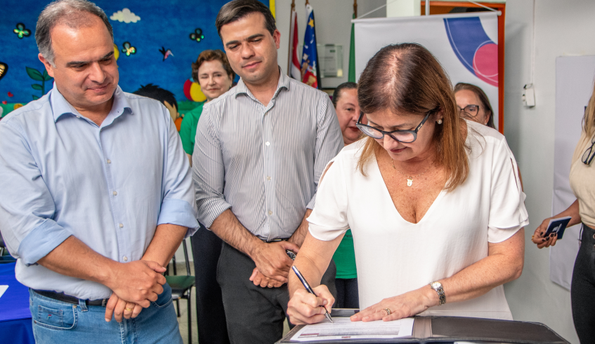 Há dez anos na direção da escola, o diretor Arnaldo Rodrigues da Silva comemorou a assinatura. “Vocês não sabem o quanto a gente está feliz. Estamos esperando há 10 anos por esse momento e ele chegou. Vocês estão escrevendo o futuro da escola”, disse.