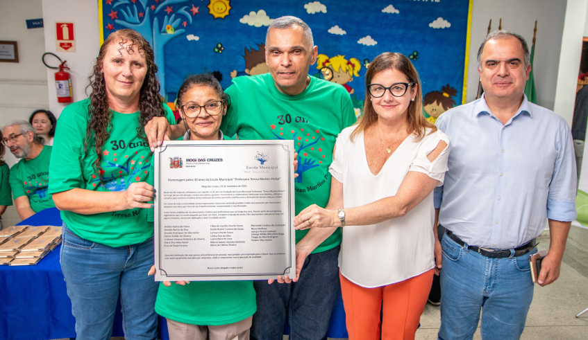 Para comemorar o futuro da escola, foram entregues homenagens para a prefeita, a secretária de Educação, Darly Aparecida de Carvalho e a adjunta da Pasta, Maria Aparecida Cervan Vidal. Celebrando o passado da escola, foram homenageadas, durante o evento, as professoras aposentadas, que atuaram por mais de 20 anos na unidade escolar: Marisa Miwa Yamaguchi Geremias, Jimena Bengas Ortiz Pereira e Célia Regina de Oliveira Rodrigues e a ex-diretora Adriana Jesus. A primeira diretora da escola, Márcia Valéria Cruz, também foi homenageada.