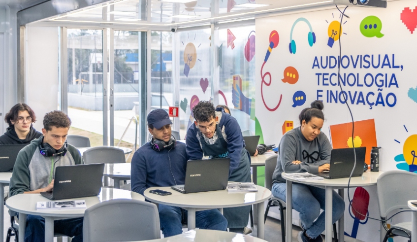 Cada carreta é adaptada de acordo com o curso oferecido. A carreta de tecnologia conta com computadores, fones, mesas de som e até um estúdio para produção de vídeos e podcasts.