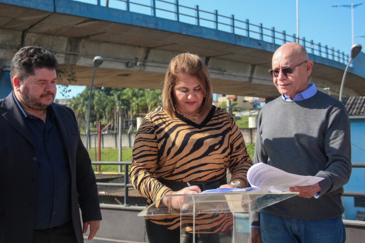 A prefeita Marcia Bin assinou, na manhã desta quarta-feira (29/06), a ordem de serviço para retomada da obra de construção da nova alça do viaduto “Tancredo Neves”, localizado na região central de Poá. Desde o início de 2021, a chefe do Executivo municipal realizou diversas reuniões no âmbito Federal e Estadual, objetivando a busca por recursos e, por meio do convênio com o Governo do Estado, no valor de R$ 12 milhões, os serviços terão início nos próximos dias.