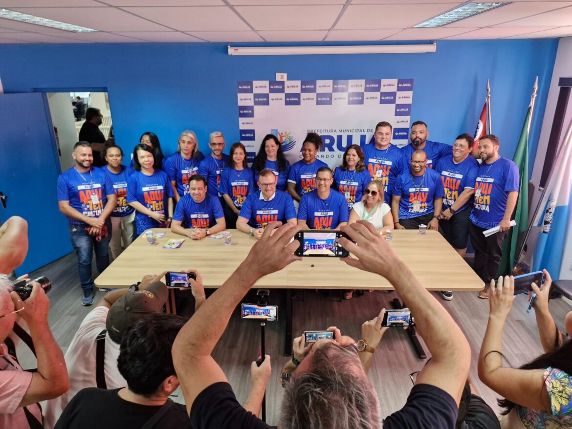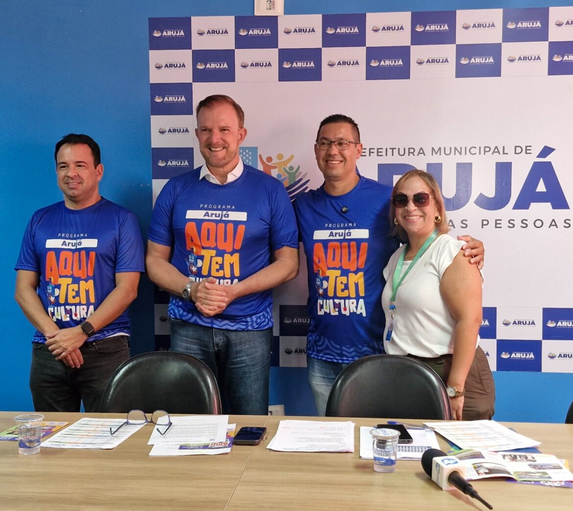 Com o lançamento do Programa Municipal “Arujá Aqui tem Cultura”, a partir de agora os arujaenses podem se inscrever em mais de 30 modalidades de cursos e oficinas culturais gratuitos, espalhados em todos os cantos da cidade. São mais de 3.500 vagas anunciadas na manhã de terça-feira (11) pelo prefeito Luis Camargo, o Dr Camargo, durante entrevista coletiva realizada na Sala de Reunião da Prefeitura. Acompanhado do vice-prefeito Rodolfo Machado, do secretário municipal da pasta Rogério da Padaria e da presidente da Câmara, Professora Cris do Barreto, o chefe do Executivo Municipal destacou o objetivo do programa, que é ampliar e continuar levando a Cultura para todos os cantos da cidade, dando cada vez mais vida e cor à cidade e promovendo os novos e os já conhecidos talentos de Arujá.