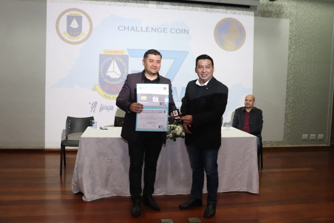 Medalha ‘Challenge Coin’ foi concedida em alusão aos trabalhos desenvolvidos em prol da Segurança Pública