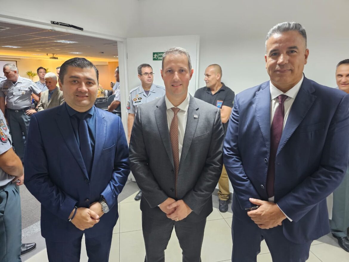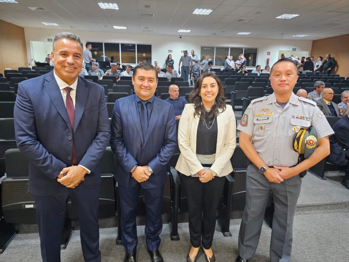 A cerimônia também contou com as presenças do secretário de Estado da Segurança Pública, capitão Guilherme Derrite; do coronel Rodrigo Quintino, do Comando de Policiamento de Área Metropolitana (CPAM-12); e do comandante do 32º BPM/M, tenente-coronel Joel Chen.