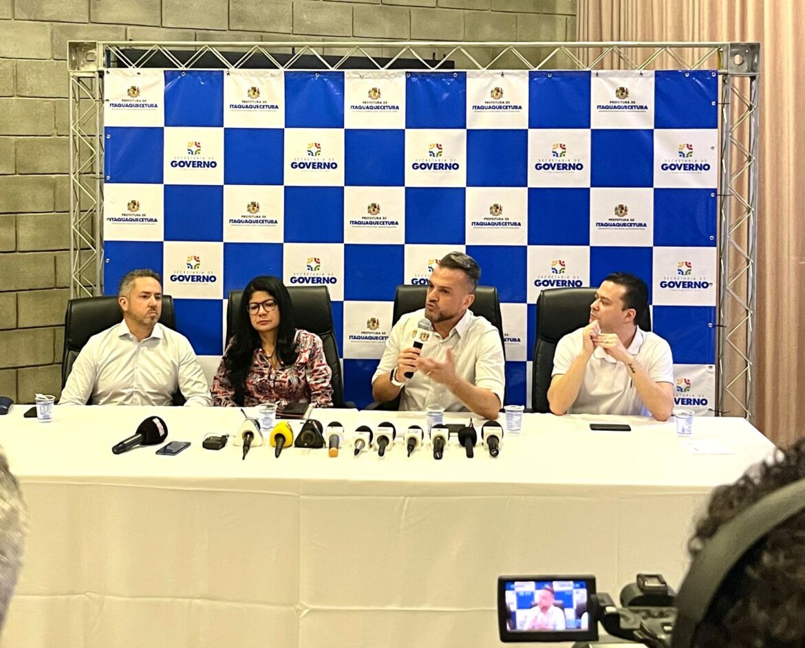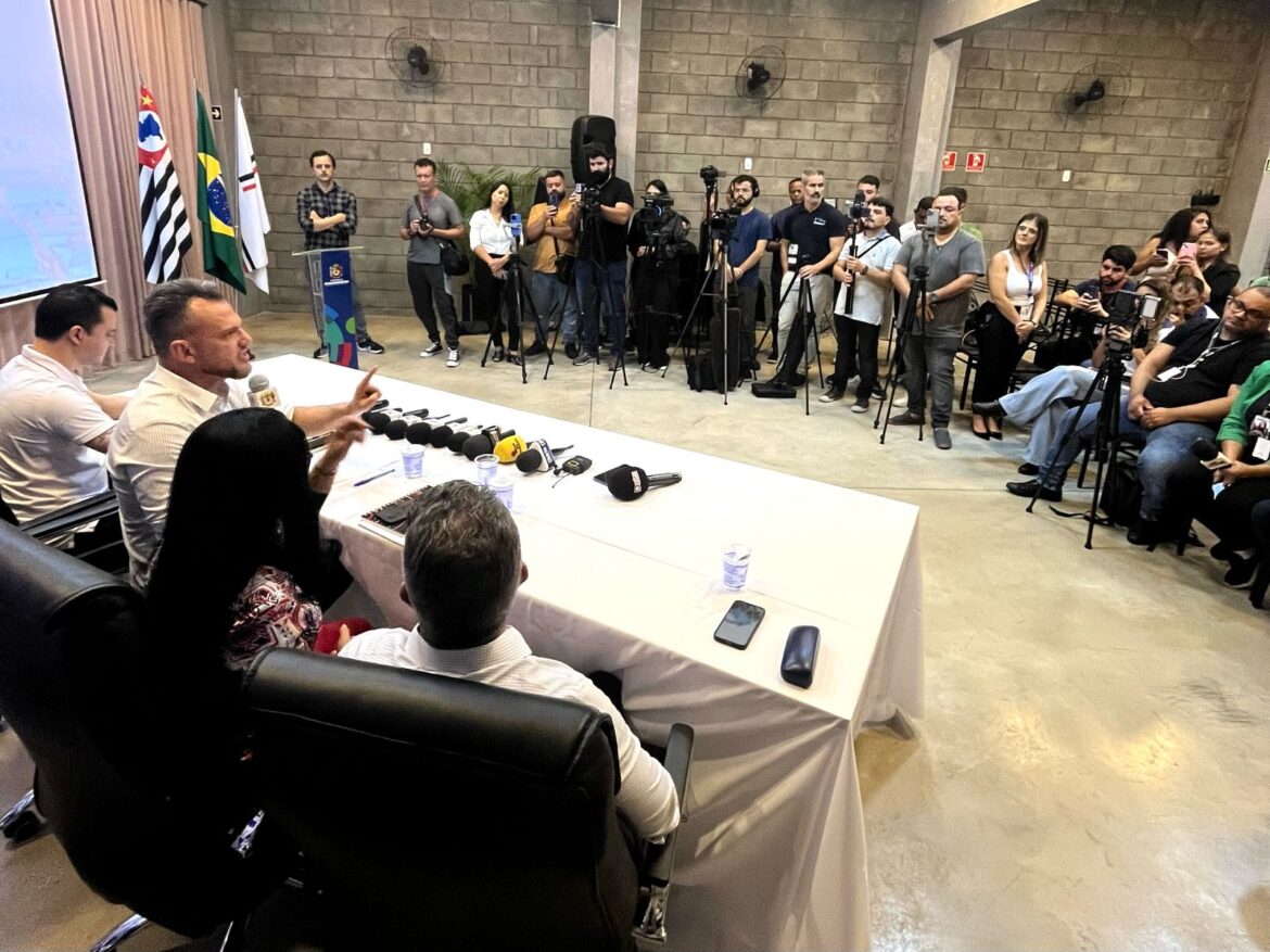 O prefeito Eduardo Boigues apresentou, na quarta-feira (9), um balanço dos 100 primeiros dias de governo em Itaquaquecetuba. O líder do Executivo destacou os avanços de 2025 em uma coletiva de imprensa que contou com a presença de pelo menos 37 veículos da região e falou sobre as conquistas em todas as áreas. Ao lado do vice-prefeito Rogério Tarento, do secretário de Governo, Marcello Barbosa, e da secretária de Habitação, Angela Quirino, Boigues também anunciou as principais ações futuras e respondeu os questionamentos dos jornalistas.
