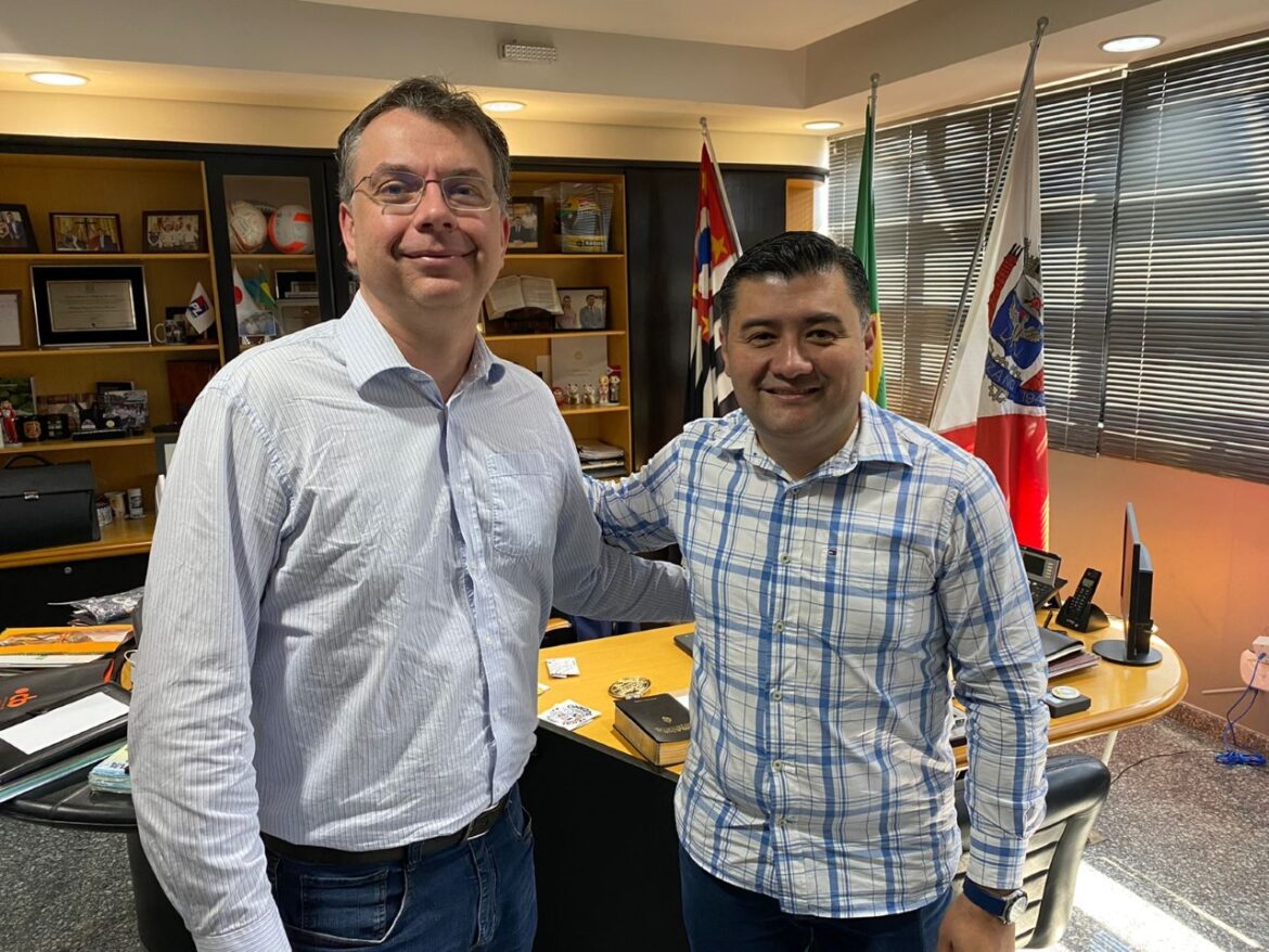 O prefeito Rodrigo Ashiuchi recebeu na segunda-feira (08/08) a visita do novo delegado titular do 1º Distrito Policial de Palmeiras, João Marcos Noman de Alencar. Ele, que já atuava nas delegacias do Alto Tietê como plantonista, entre elas a Delegacia Central de Suzano, apresentou suas ideias para trabalhar pela segurança e elucidação de crimes na região sul da cidade. Estiveram presentes o chefe de Gabinete, Afrânio Evaristo da Silva, e o secretário municipal de Segurança Cidadã, Elias Marques. Também foram destacadas as ações promovidas pela Guarda Civil Municipal (GCM), por meio da Patrulha Maria da Penha, do Canil, da Ronda Ostensiva Municipal (Romu) e da Ronda Ostensiva Motorizada (Romo), e as parcerias com a Polícia Civil para a realização de operações especiais em Suzano.