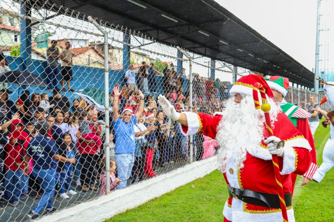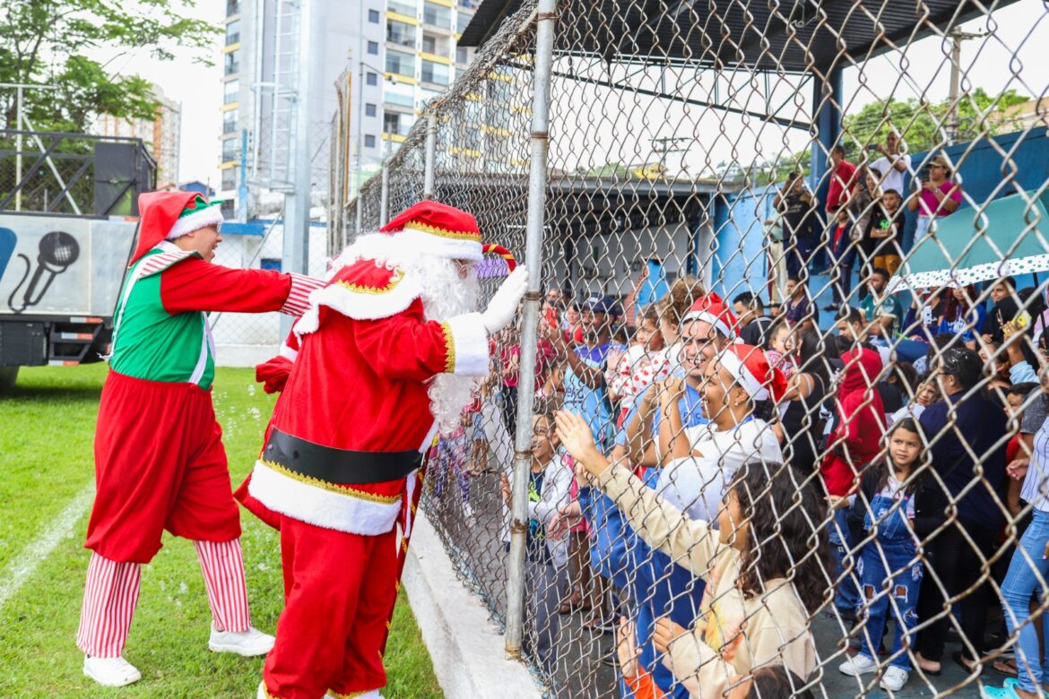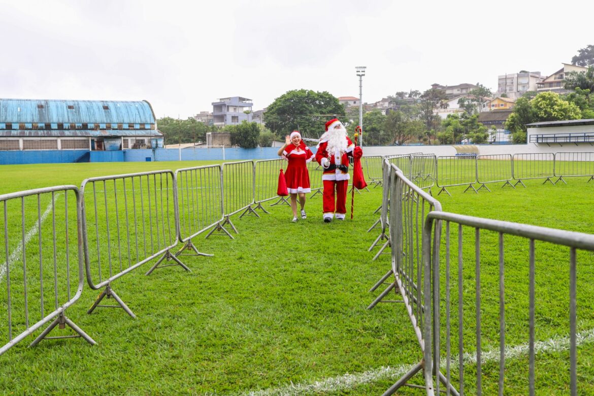 O Fundo Social de Solidariedade entregou no estádio cerca de 2 mil brinquedos a todos os pequeninos presentes e, a partir desta segunda-feira (16), dará início ao “Papai Noel nos Bairros”, onde levará a caravana do Bom Velhinho e sua turma a cada canto da cidade para presentear as crianças. Serão cerca de 5 mil pequeninos que também serão presenteados com brinquedos adquiridos com recursos do Jantar Beneficente realizado recentemente pelo Fundo Social.