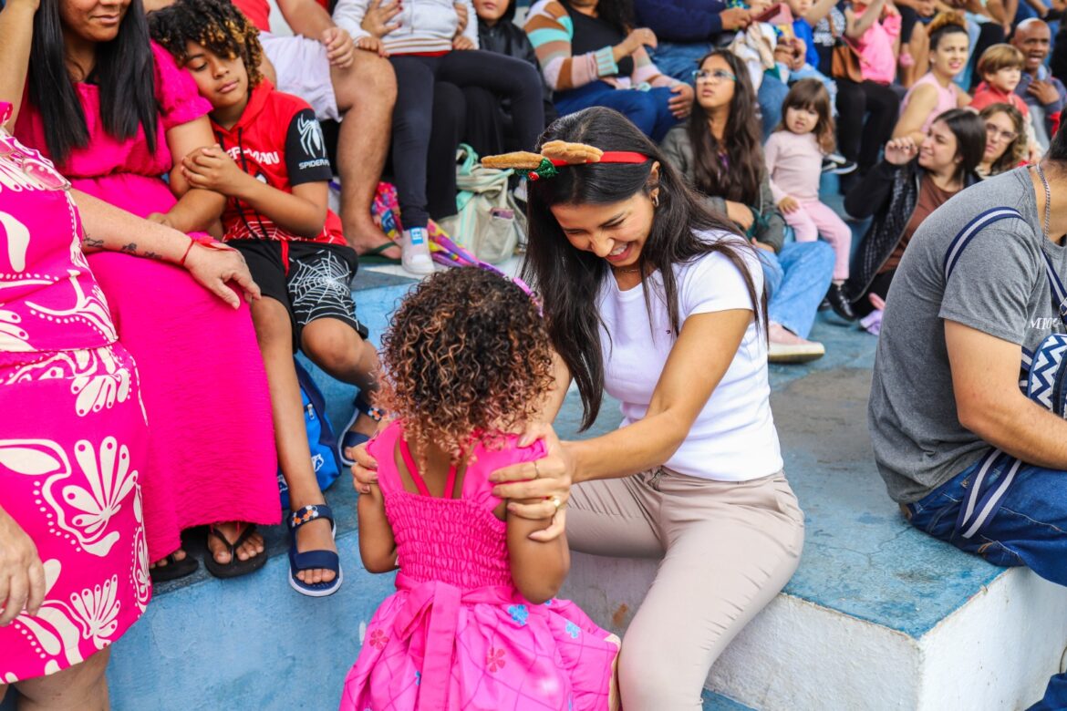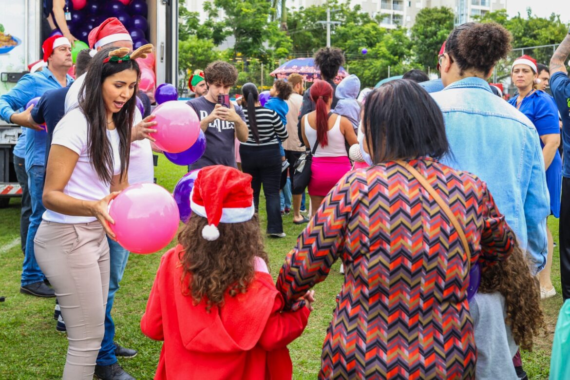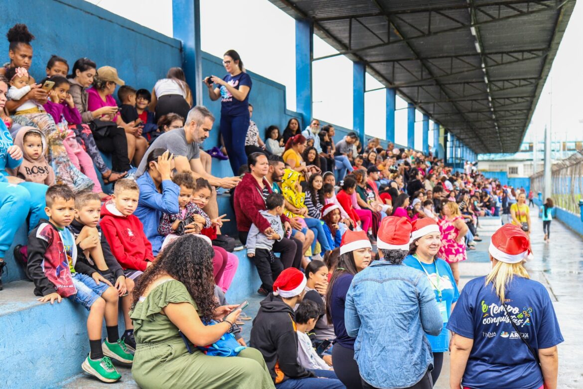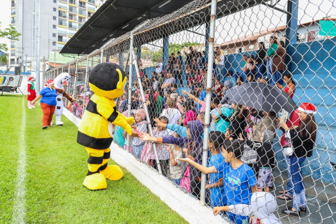 O Fundo Social de Solidariedade entregou no estádio cerca de 2 mil brinquedos a todos os pequeninos presentes e, a partir desta segunda-feira (16), dará início ao “Papai Noel nos Bairros”, onde levará a caravana do Bom Velhinho e sua turma a cada canto da cidade para presentear as crianças. Serão cerca de 5 mil pequeninos que também serão presenteados com brinquedos adquiridos com recursos do Jantar Beneficente realizado recentemente pelo Fundo Social.