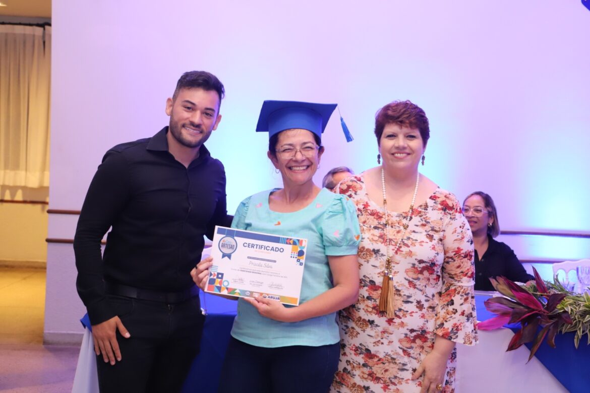 Na oportunidade, a secretaria-adjunta de Desenvolvimento Econômico, Flávia Sanches, representantes da Câmara Municipal e os professores dos formandos prestigiaram a cerimônia.