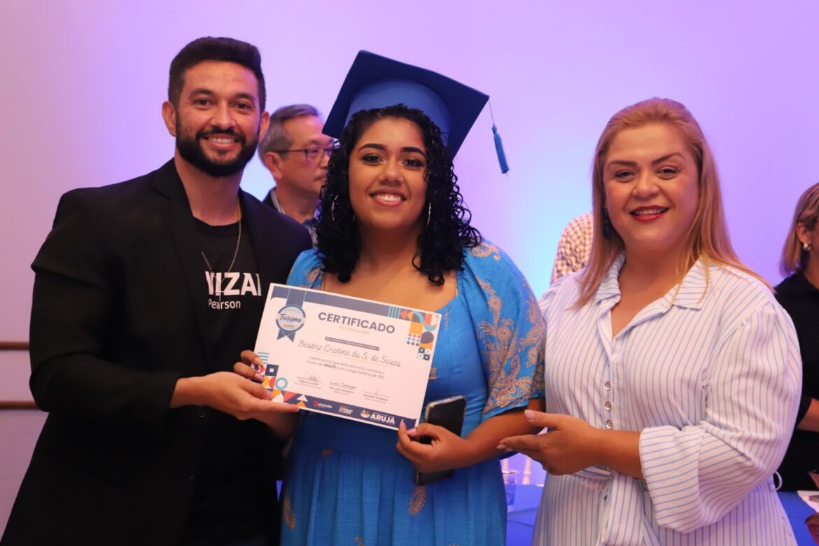 A Prefeitura de Arujá realizou, na noite de terça-feira (03), a cerimônia de formatura de 2024 dos alunos da Escola de Turismo. Durante o evento, 98 alunos receberam seus certificados de conclusão, acompanhados de seus convidados, dos cursos de Inglês, Espanhol, Recepcionista de Eventos e Artesanato, oferecidos nos dois semestres de 2024.