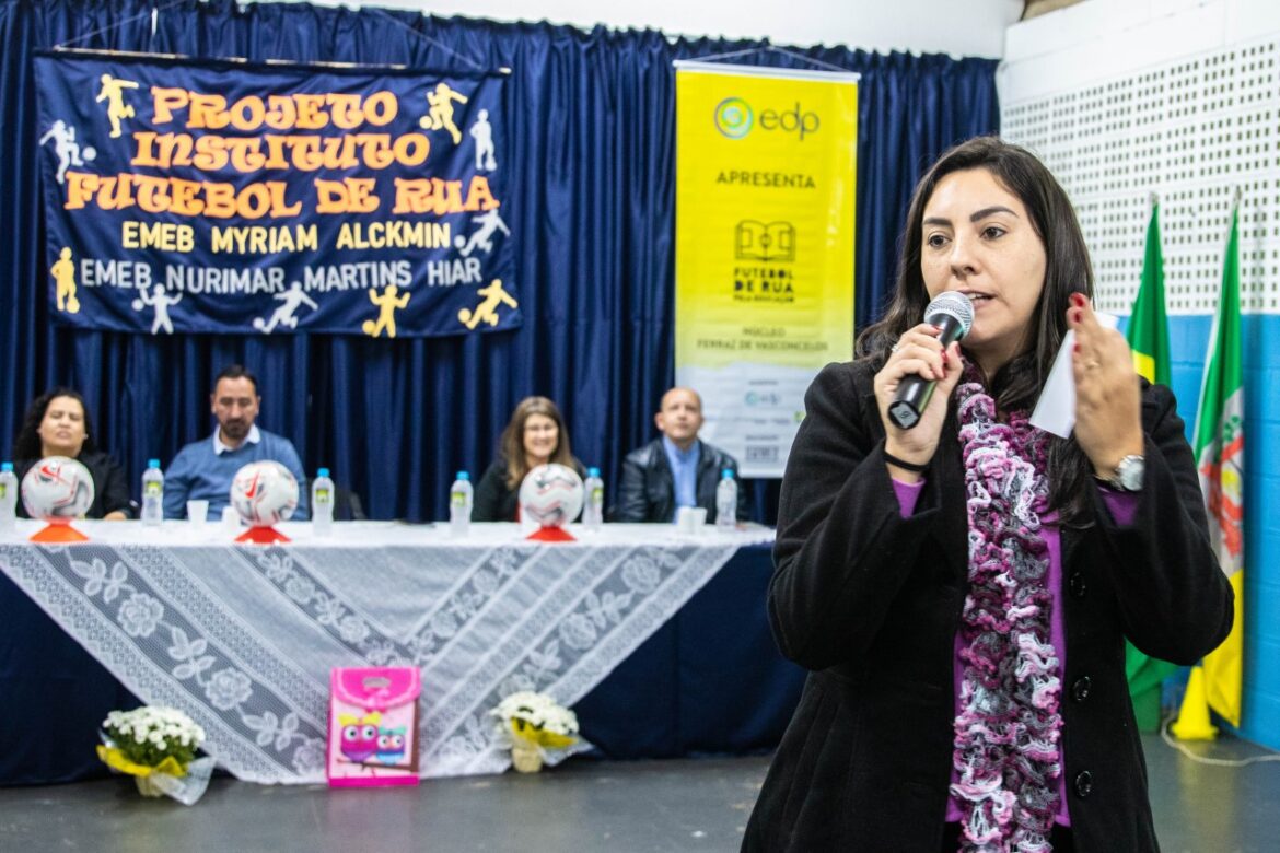 Com o objetivo de levar inclusão esportiva às crianças e adolescentes em vulnerabilidade social, a Prefeitura de Ferraz de Vasconcelos, por meio da Secretaria de Educação, realizou o lançamento oficial do projeto “Futebol de Rua pela Educação”, em parceria com o Grupo EDP e o Instituto Futebol de Rua. O evento contou com a presença da prefeita Priscila Gambale.