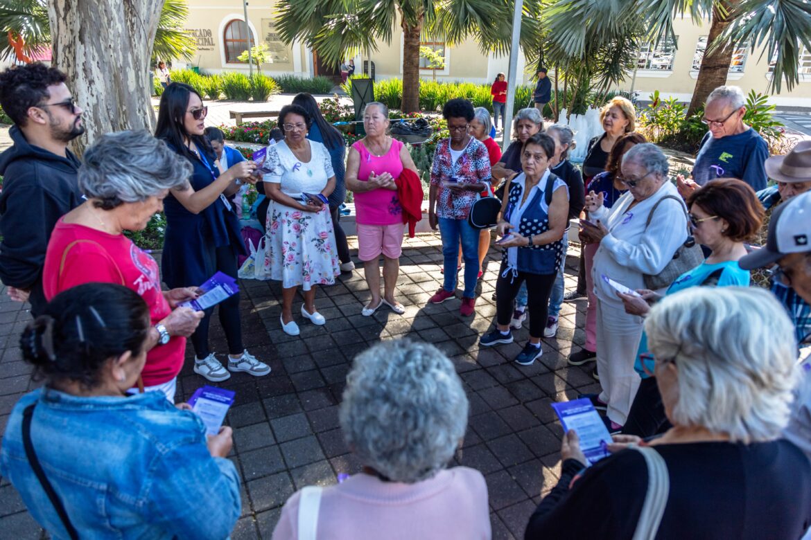 Isso porque os idosos que participam das atividades promovidas pela Secretaria Municipal de Desenvolvimento Social e Habitação vão às ruas para uma movimentação referente a campanha, com entrega de panfletos e abordagem da temática junto aos munícipes.