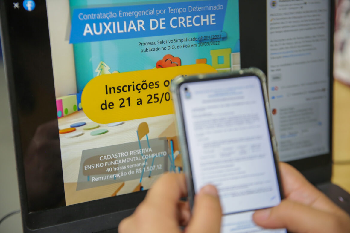 A Prefeitura de Poá, por meio da Secretaria de Educação, abre na segunda-feira (21/03) as inscrições para o processo seletivo simplificado para contratação (por tempo determinado) de Auxiliar de Creche. As inscrições serão feitas apenas de forma online e para se candidatar os interessados devem acessar o site da Prefeitura (www.poa.sp.gov.br) ou da Pasta responsável (www.educacaopoa.com). O período de inscrições se encerra na sexta-feira (25/03).
