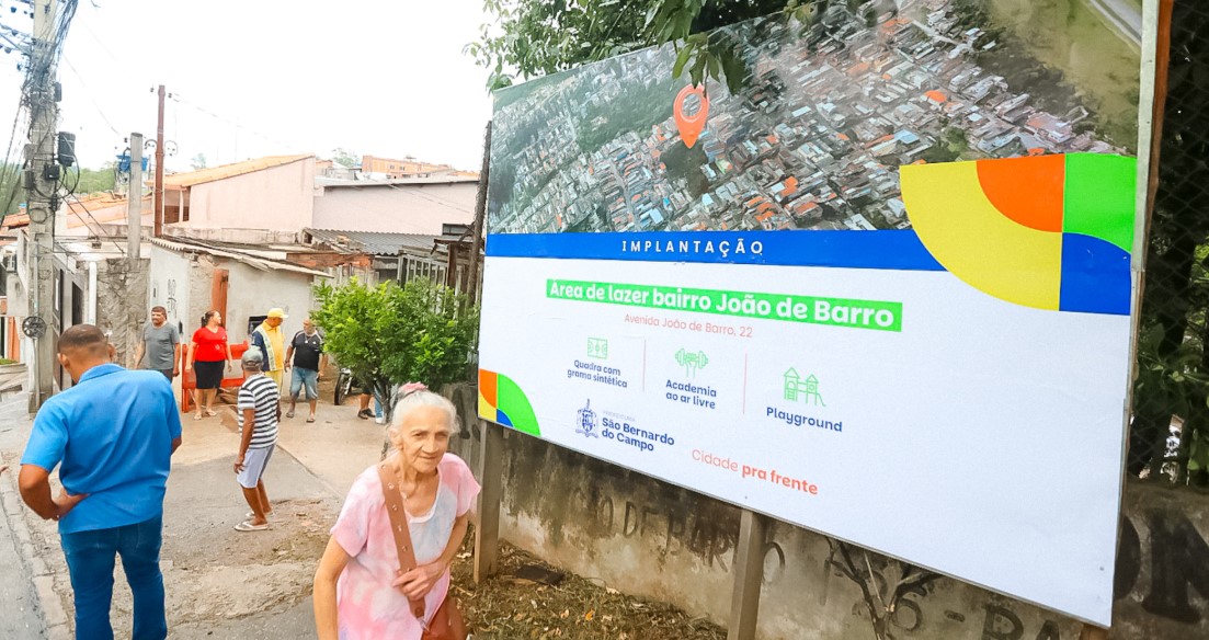 O prefeito de São Bernardo, Marcelo Lima, assinou ordem de serviço no domingo (19) para início de obras de importante projeto no Jardim João de Bairro, na região do Grande Alvarenga: a construção de uma área de lazer e esportes, contemplando demanda antiga para benefício dos moradores do bairro. Novo espaço será implantado em frente à sede da Associação Amigos de Bairro João de Barro.