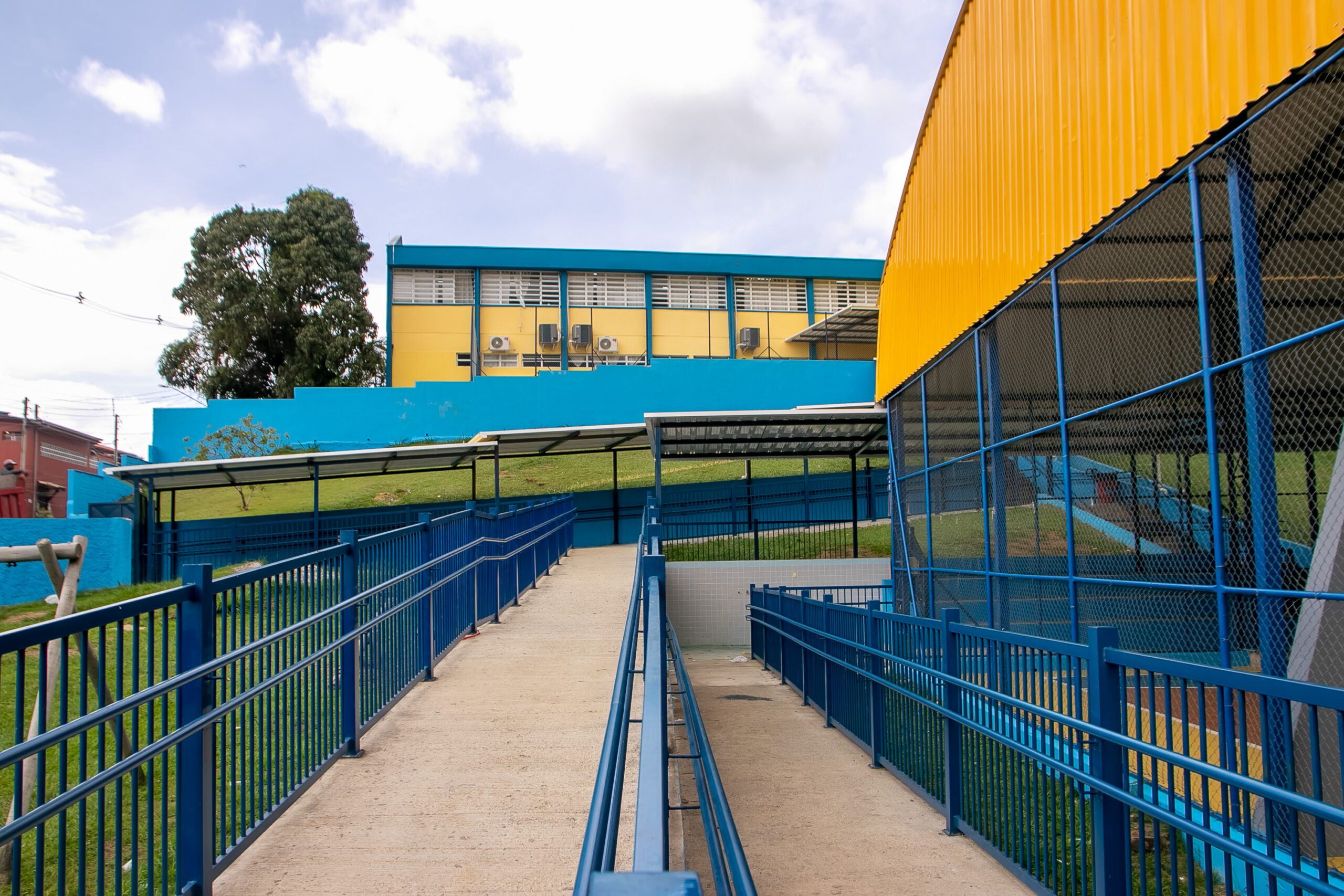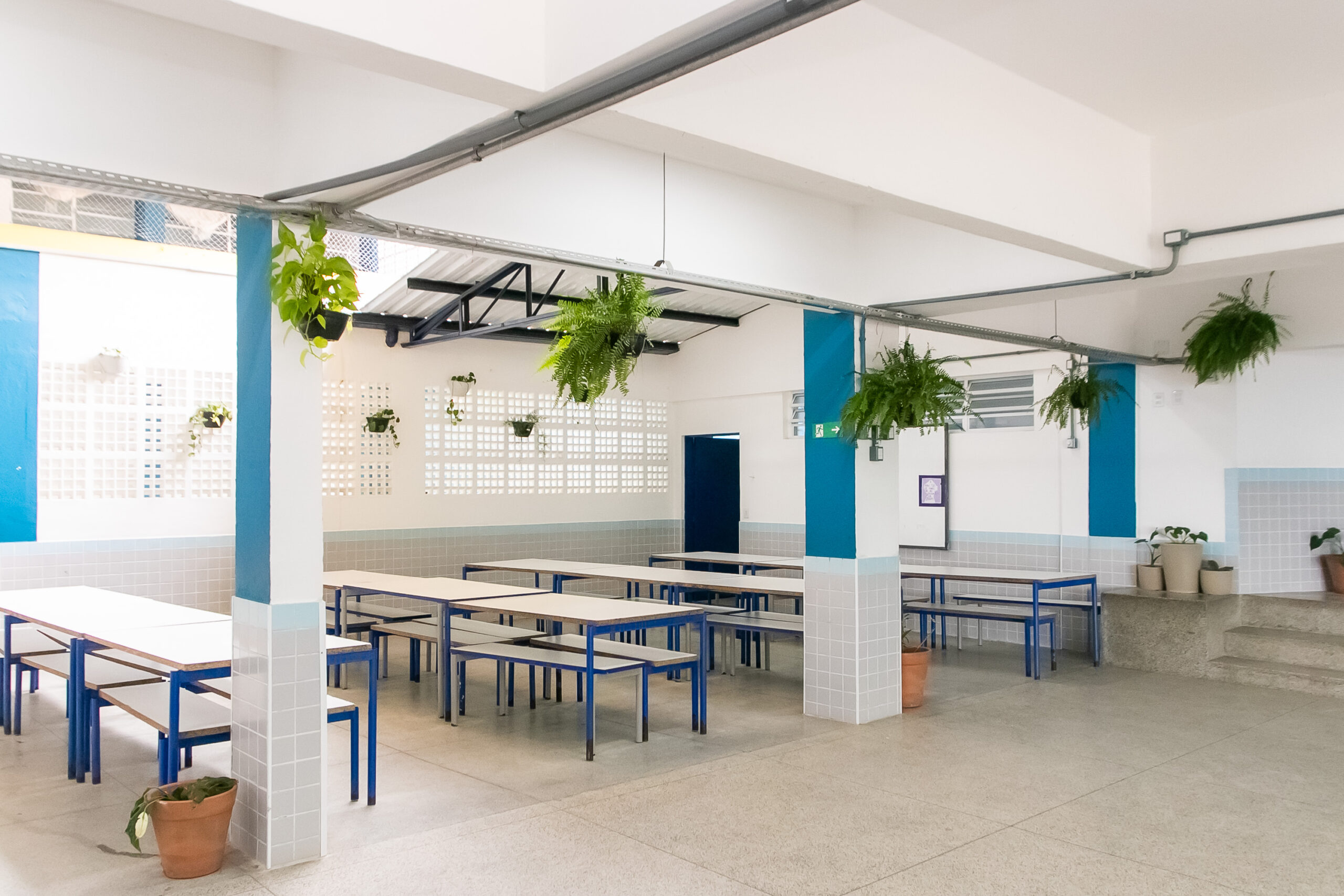 As intervenções realizadas incluem a reforma completa da quadra de esportes, a execução de uma rampa de acessibilidade para a quadra, a cobertura do acesso à escola e da arquibancada, a adequação da caixa d’água com a instalação de escadas, a troca geral das esquadrias por alumínio, a pintura geral do prédio, a instalação de um novo padrão de entrada de energia, o pastilhamento de todas as salas e a troca dos pisos.