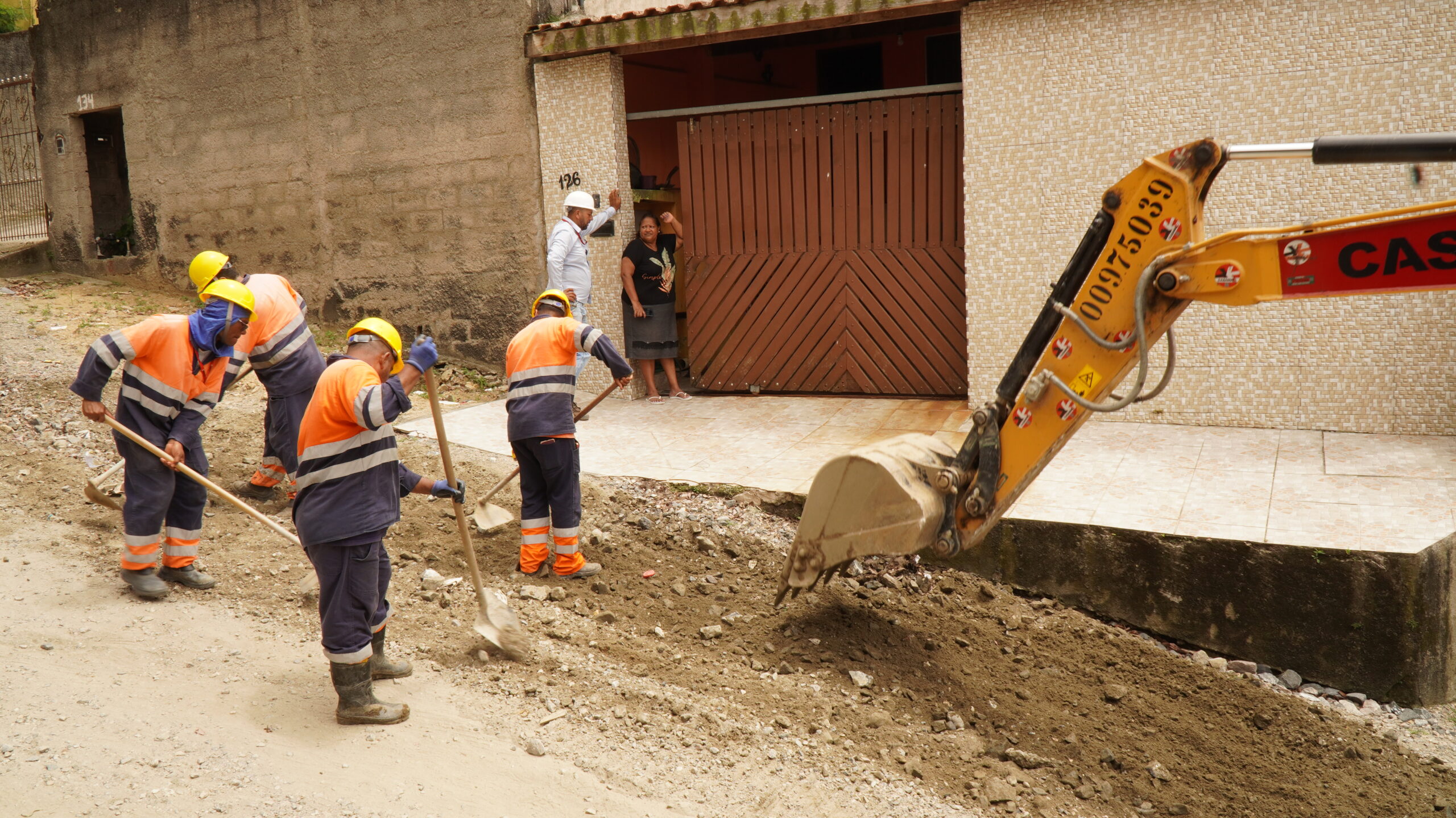 Os maquinários e funcionários trabalham para a ampliação e instalação de drenagem e pavimentação asfáltica. Um dos exemplos é a Rua Monte das Oliveira, que passa por troca da tubulação da drenagem que vai corrigir o problema de alagamentos.