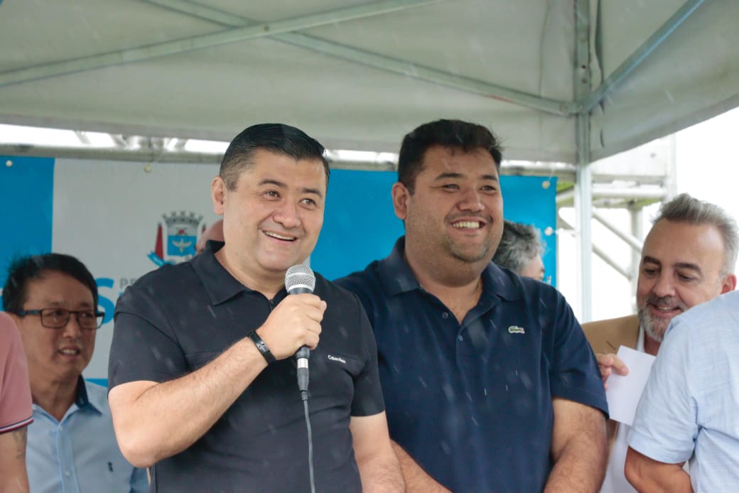 A solenidade contou com a presença do prefeito Rodrigo Ashiuchi; do vereador Denis Claudio da Silva, o Filho do Pedrinho do Mercado, que intermediou o envio de uma das emendas parlamentares que vai possibilitar a construção do espaço; do vereador e prefeito eleito Pedro Ishi; além dos secretários municipais de Educação, Leandro Bassini, da Saúde, Diego Ferreira, e da Manutenção e Serviços Urbanos, Samuel Oliveira.