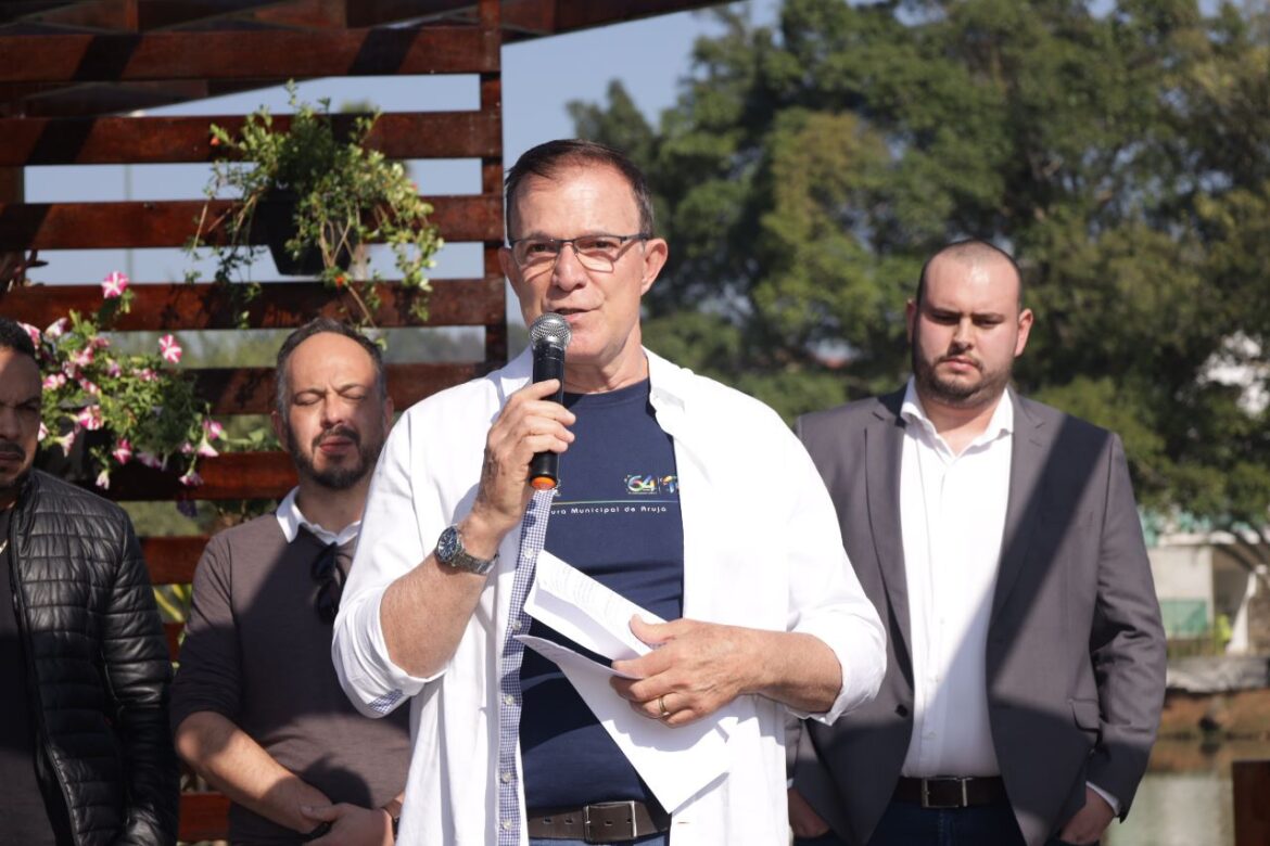 No último sábado (05), a Prefeitura de Arujá realizou uma rápida solenidade, dentro do condomínio Arujá V, na área de convívio social próxima ao lago, que recebeu o nome de “Marco Antonio de Souza”. O espaço fica localizado entre a rua Benedito Manoel dos Santos, próxima ao nº 850, a rua Cianita, perto do 882, e a rua Amazonita, na altura do 739.