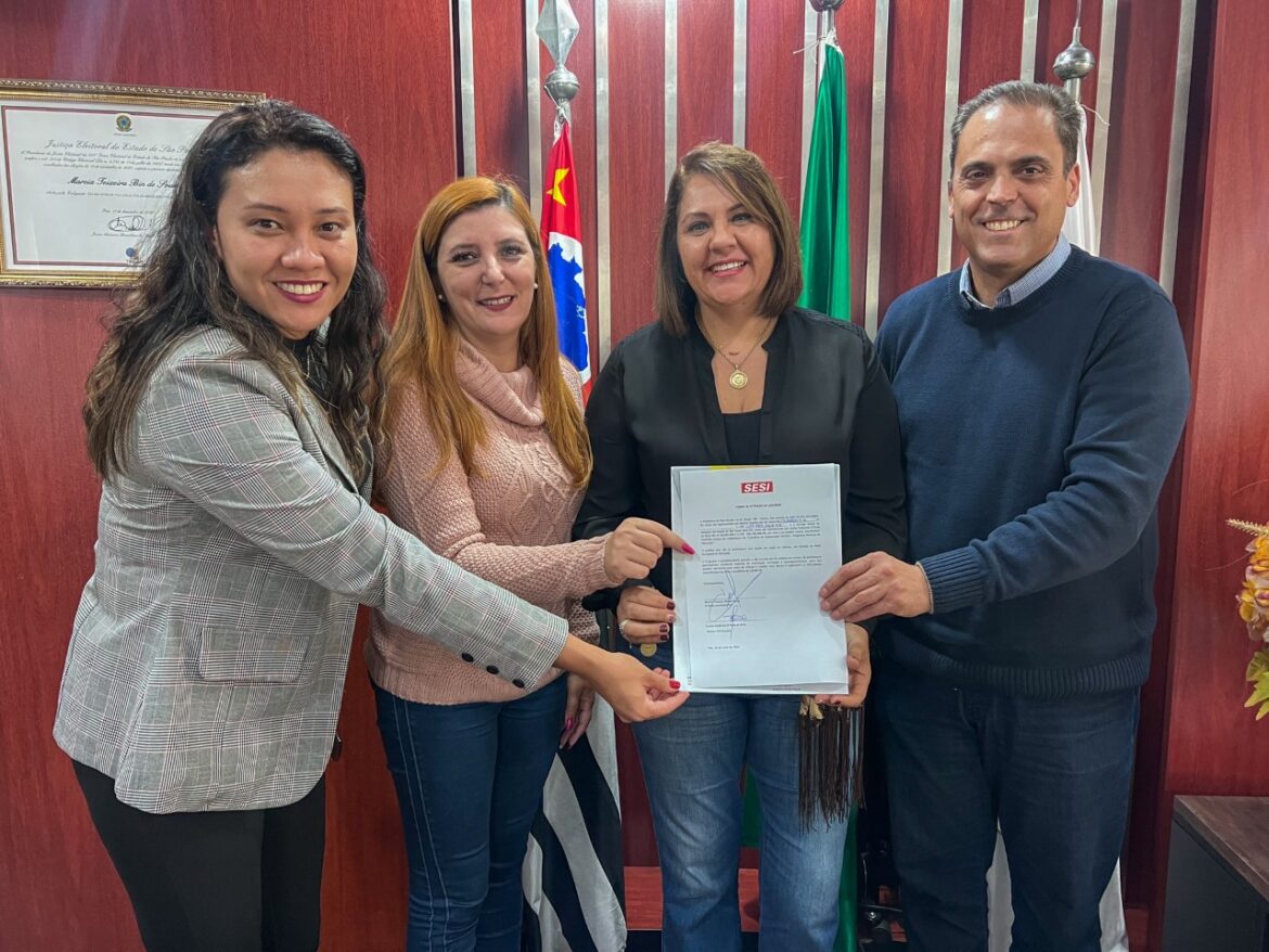 Prefeita Marcia Bin assinou Carta de Intenção por parceria com o Serviço social; objetivo é capacitar professores para facilitar a recuperação de conteúdo