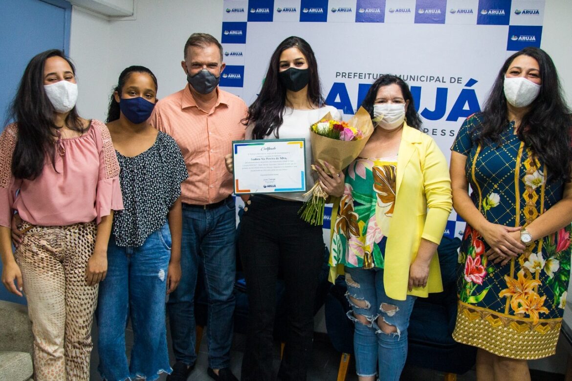 Na tarde de segunda-feira (20), o prefeito de Arujá Luis Camargo, o Dr Camargo, recebeu em seu gabinete para homenagear, em nome da Prefeitura, a estudante Isadora Niz Pereira da Silva, de 18 anos, moradora do bairro do Mirante, que cursa o penúltimo ano do curso de Informática para Internet no Instituto Federal de Educação, Ciência e Tecnologia de São Paulo (IFSP), que fica em Guarulhos. Isadora e família foram recepcionadas pelo chefe do Executivo Municipal e pela secretária municipal de Educação, Elaine Gentil. A moça foi homenageada com flores e um certificado por ter criado, junto à colega de classe Bruna Giselle Arruda de Lima, um projeto intitulado “IFSPCHAT – Saúde Mental, Tecnologia e Interação Escolar”, que foi ganhador do VIII FECEG (Feira de Ciências e Engenharia de Guarulhos) e classificado em 2022 para a feira nacional Febrace (Feira Brasileira de Ciências e Engenharia).