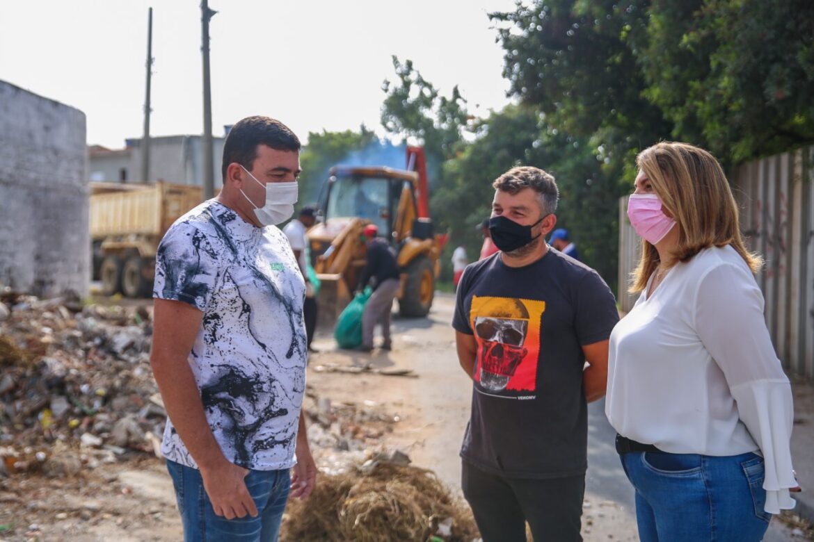 Descarte irregular de entulhos é crime ambiental passível de multa; prefeita Marcia Bin e secretário de Governo, Marcio Borzani, vistoriaram os serviços