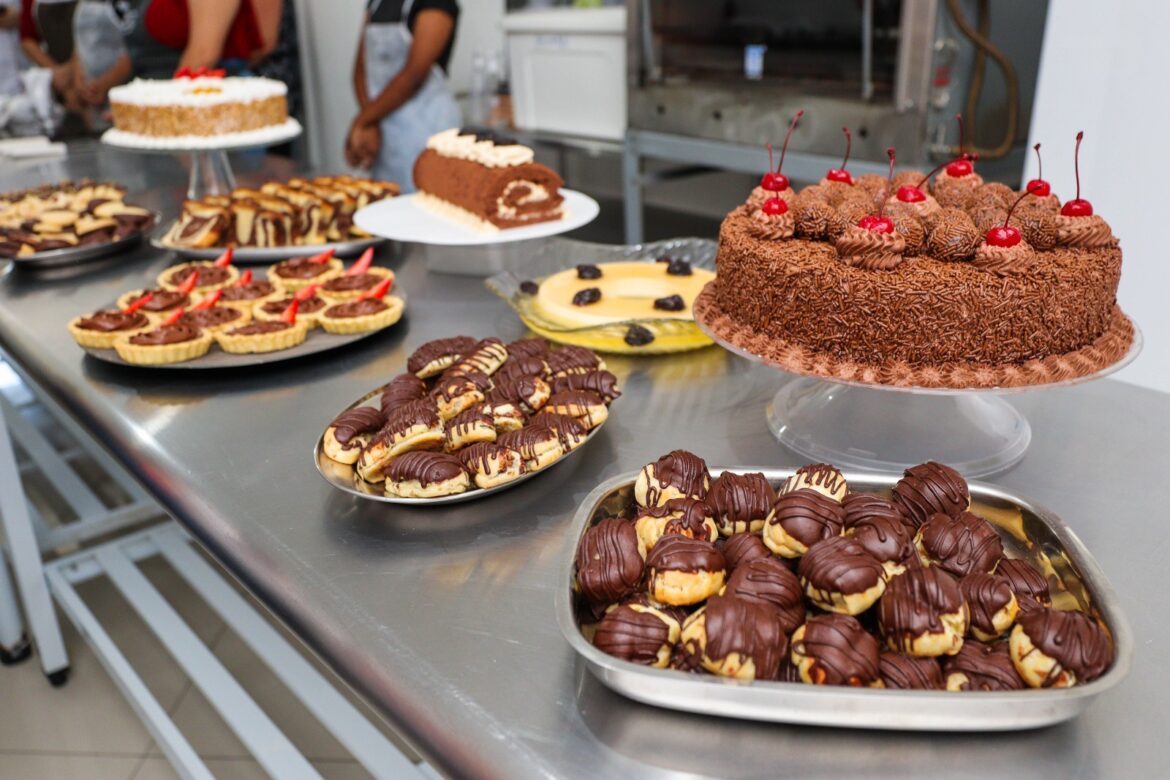 As alunas do curso de Produtos de Confeitaria realizado pelo Sebrae e Senai, em parceria com a Prefeitura de Ferraz de Vasconcelos encerraram o último dia de aula, nesta terça-feira (16), com uma produção de bolos e produtos para café da manhã e coffe break.