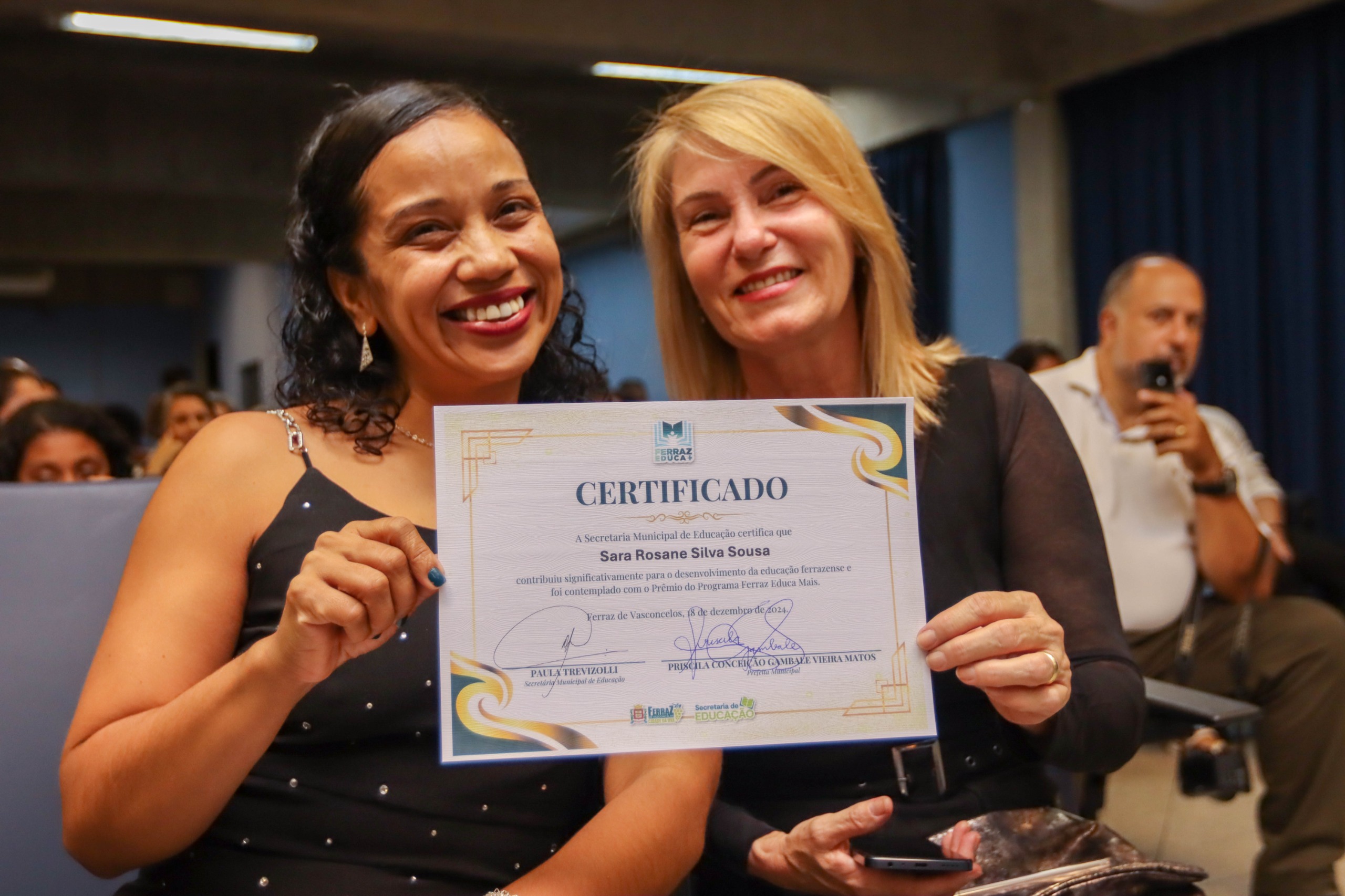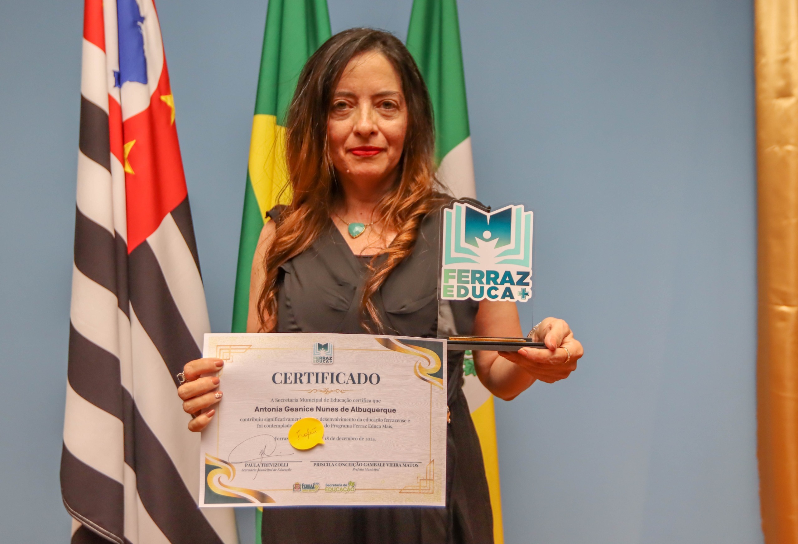 A Secretaria de Educação de Ferraz de Vasconcelos realizou na última quarta-feira (18) a premiação do “Ferraz Educa Mais”, que destacou a atuação e empenho dos professores, gestores educacionais e membros do núcleo pedagógico durante o ano letivo. A entrega dos prêmios foi feita pela prefeita Priscila Gambale e a titular da pasta, Paula Trevizolli.