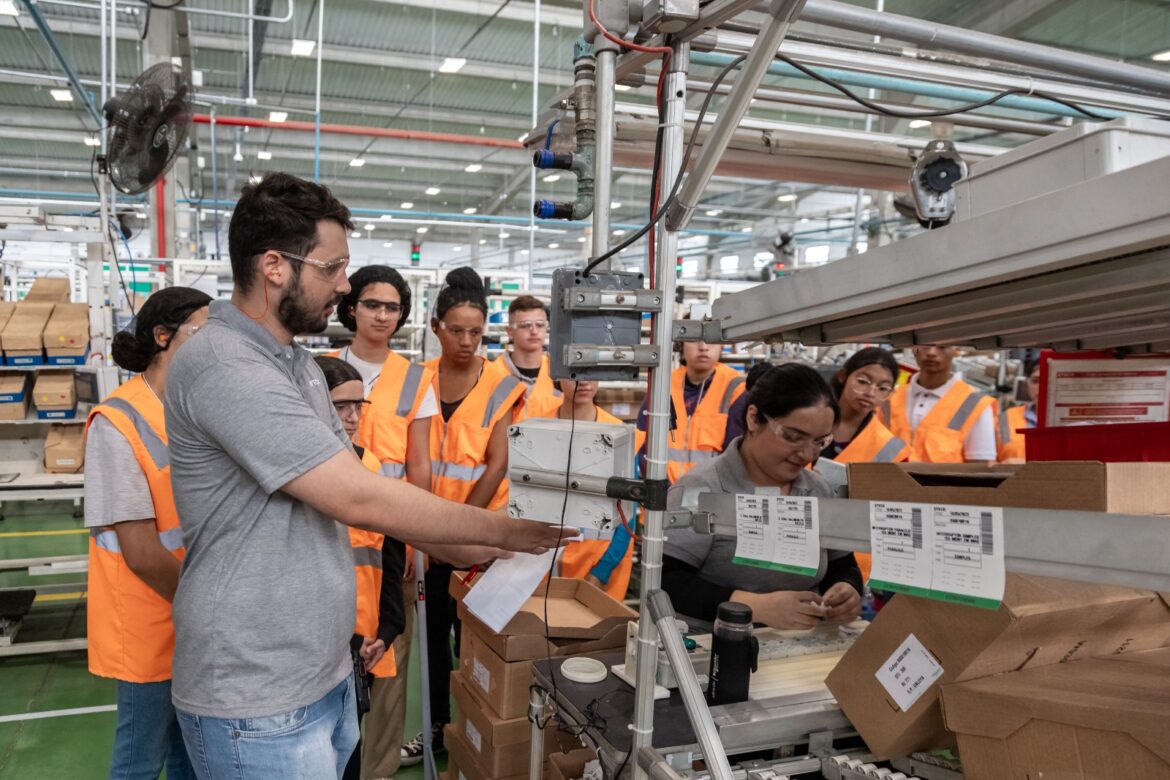Outra atividade interessante foi a visita dos jovens à indústria Steck, uma das maiores no segmento de materiais elétricos, que está instalada em Guararema, no bairro Parque Agrinco. Por lá, além da apresentação geral da empresa, foi realizado um tour pela fábrica em que são produzidas tomadas, interruptores, disjuntores e outros produtos, com demonstração dos processos de fabricação e utilização de componentes elétricos tendo sido explicado em detalhes.