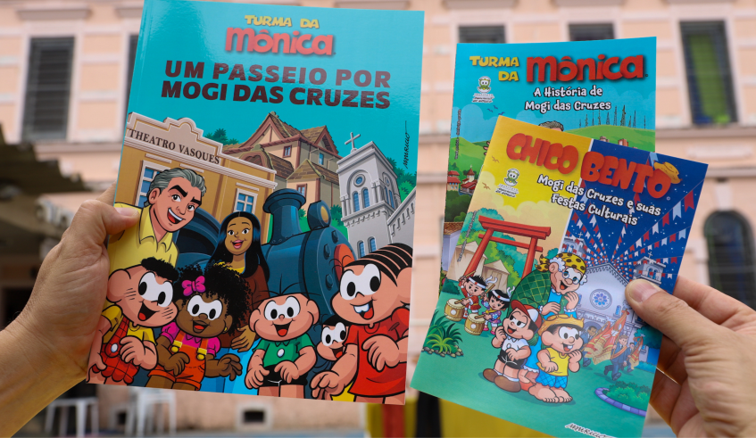 A história de Mogi das Cruzes e suas tradições culturais estão sendo contadas em dois gibis e um livro por personagens da Turma da Mônica e seu criador, Mauricio de Sousa. A EM Coronel Almeida, no Centro, escola em que o desenhista e empresário estudou, recebeu os exemplares na quinta-feira (21). As publicações são frutos de uma parceria inédita entre a Prefeitura de Mogi das Cruzes, por meio da Secretaria de Educação e o Instituto Mauricio de Sousa (IMS).