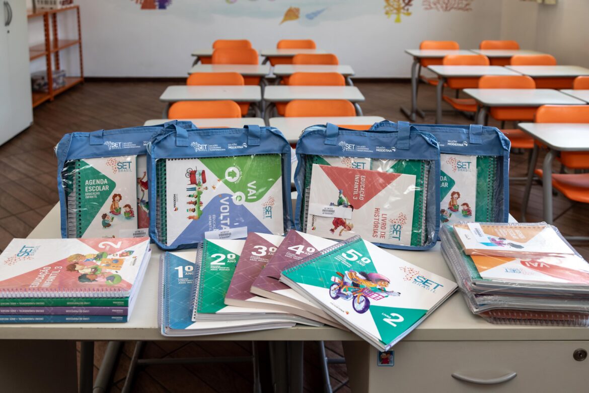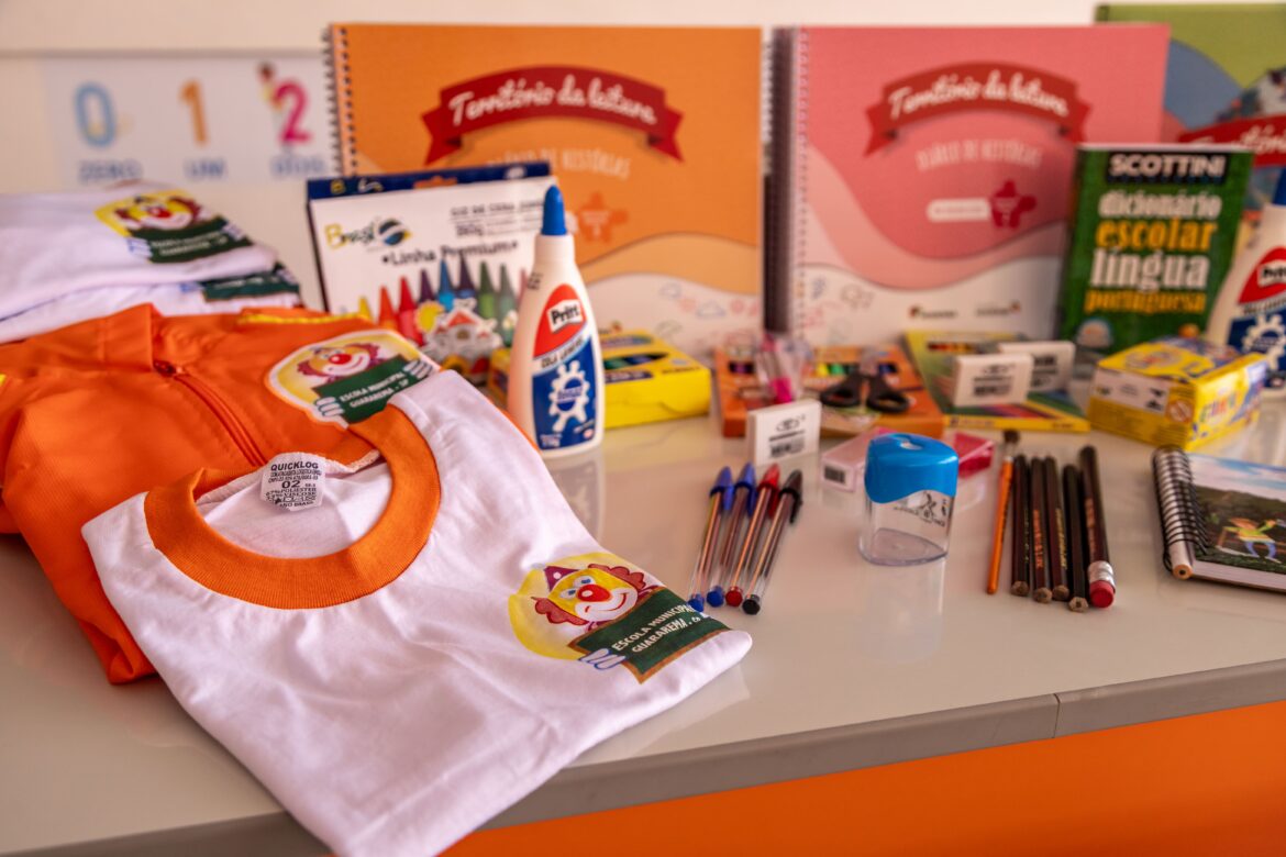 O kit conta com livros didáticos e paradidáticos, materiais de apoio e itens como lápis, canetas, canetinhas, e outros, como tintas-guache e giz de cera, de acordo com as faixas etárias. Os profissionais da Educação também já organizam os uniformes, que contam com camisetas de manga longa, manga curta, jaqueta, calça e bermuda. E tudo isso será apresentado aos pais e responsáveis por meio de um folder informativo que será entregue no primeiro dia de aula.