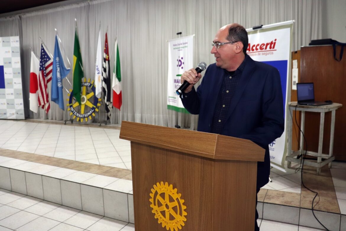 O secretário de Educação de Suzano, Leandro Bassini, participou na segunda-feira (05/09) de uma palestra para tratar sobre a rede municipal de ensino. O evento ocorreu na sede do Rotary Club, localizado no Jardim Santa Lúcia. Lá, ele conversou com os presentes sobre as ações desde o começo da gestão do prefeito Rodrigo Ashiuchi. Entre os assuntos estavam construção de creches, reformas de escolas, aquisição de chromebooks, criação de vagas e capacitações para professores. “Suzano está em pleno crescimento e a Educação tem sido uma prioridade. Foram mais de R$ 80 milhões em investimentos do final do ano passado para cá, com aquisição de novos chromebooks, investimento nas plataformas ‘Matific’ e ‘Google For Education’, inauguração de 11 creches comunitárias, convênio com o governo do Estado para cobertura de quadras escolares e muito mais. Tudo isso com o objetivo de oferecer uma educação de qualidade a todos. Agradeço o prefeito Rodrigo Ashiuchi por todo apoio”, finalizou Bassini.