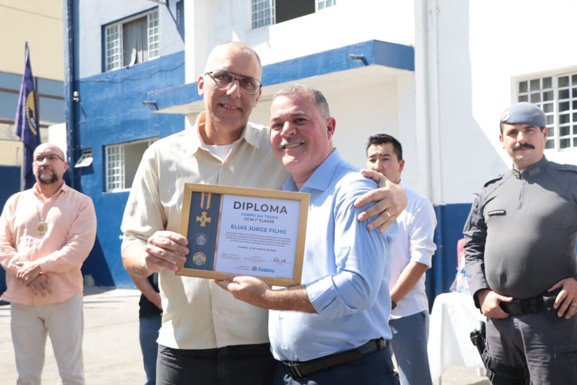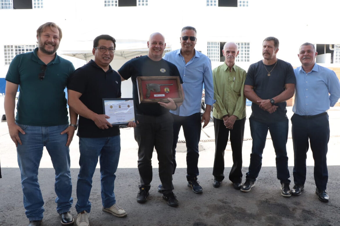 A Secretaria Municipal de Segurança Cidadã organizou nesta sexta-feira (22/08) uma cerimônia em sua sede, no bairro Vila Figueira, para homenagear os guardas civis municipais (GCMs) com mais de 30 anos de serviços prestados à sociedade. Na ocasião, 25 agentes foram reconhecidos com o diploma “Corpo da Tropa”, pela conduta íntegra em todo esse período. O mais antigo deles, Plauto Barbosa, ganhou uma réplica de uma pistola histórica, do modelo Mauser calibre 7.63 milímetros, do início do século passado.