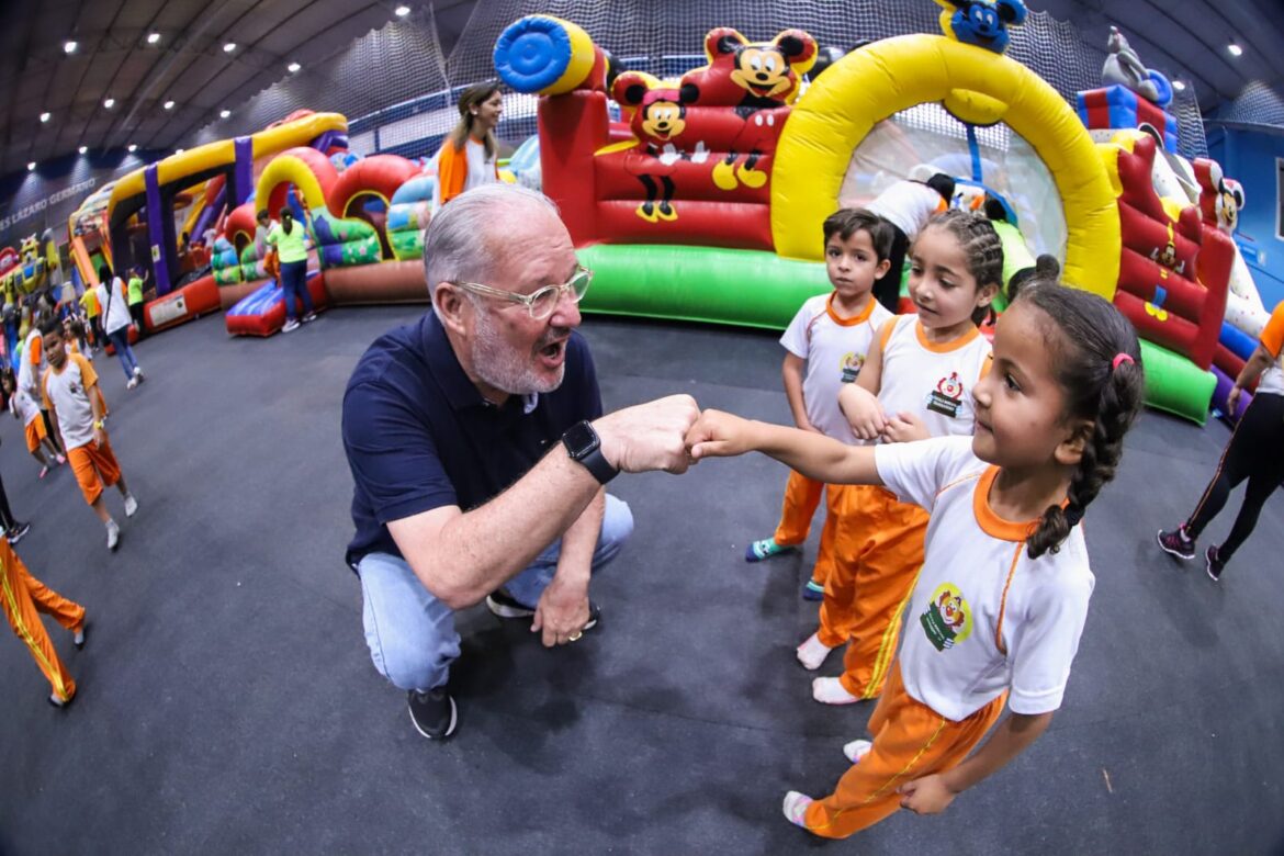 Após concluir as ações das aulas-passeio, que aliaram o Mês das Crianças com a Festa Literária de Guararema (Flig), em que cerca de 2,1 mil alunos do Ensino Fundamental da Rede Municipal de Ensino participaram da ação, a Secretaria dá início, nesta segunda-feira (24), à Estação Brincante no Ginásio Municipal de Esportes, com 12 grandes brinquedos infláveis e muita diversão.
