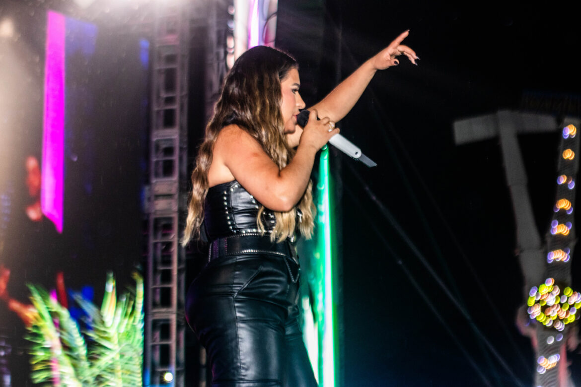 Simone Mendes encantou no palco, esbanjando muita energia, boas vibrações e sensualidade, levando o público ao delírio na pista, área vip e nos camarotes, com seus dois dançarinos e coreografias ritmadas no palco. À medida que o show avançava, ela retirou a bota, convidou uma criança ao palco e pediu para, cada vez que ela falava que ia embora, o povo cantasse o refrão: “Eu não vou embora”. O show encerrou no primeiro minuto desta quarta-feira (18).