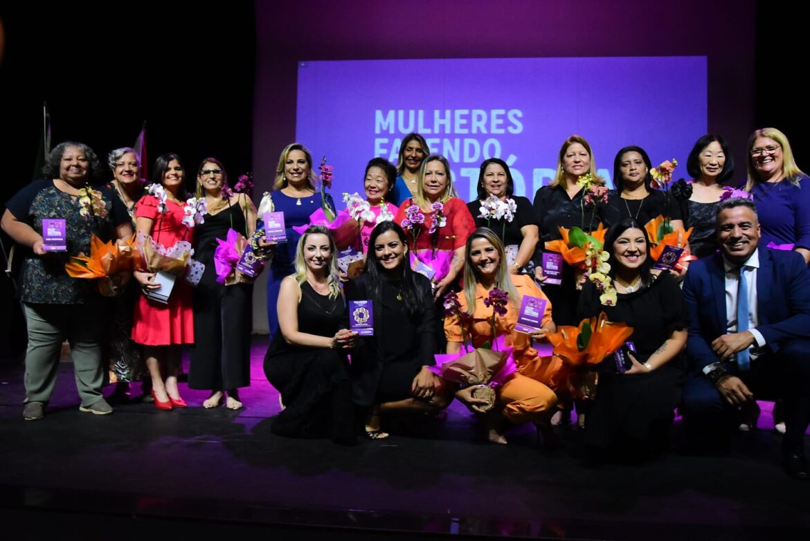 O Cineteatro Wilma Bentivegna ficou lotado na noite da última sexta-feira para receber as homenageadas e as dezenas de convidados da quarta edição do projeto “Mulheres Fazendo História na Cidade de Suzano”. A iniciativa, que é promovida pelo Serviço de Ação Social e Projetos Especiais (Saspe), da prefeitura, tem à frente a diretora Sandra Lopes Nogueira e a dirigente do órgão municipal, a primeira-dama Larissa Ashiuchi. O evento é parte da programação que aborda o “Mês da Mulher”, em alusão às celebrações do Dia Internacional da Mulher.